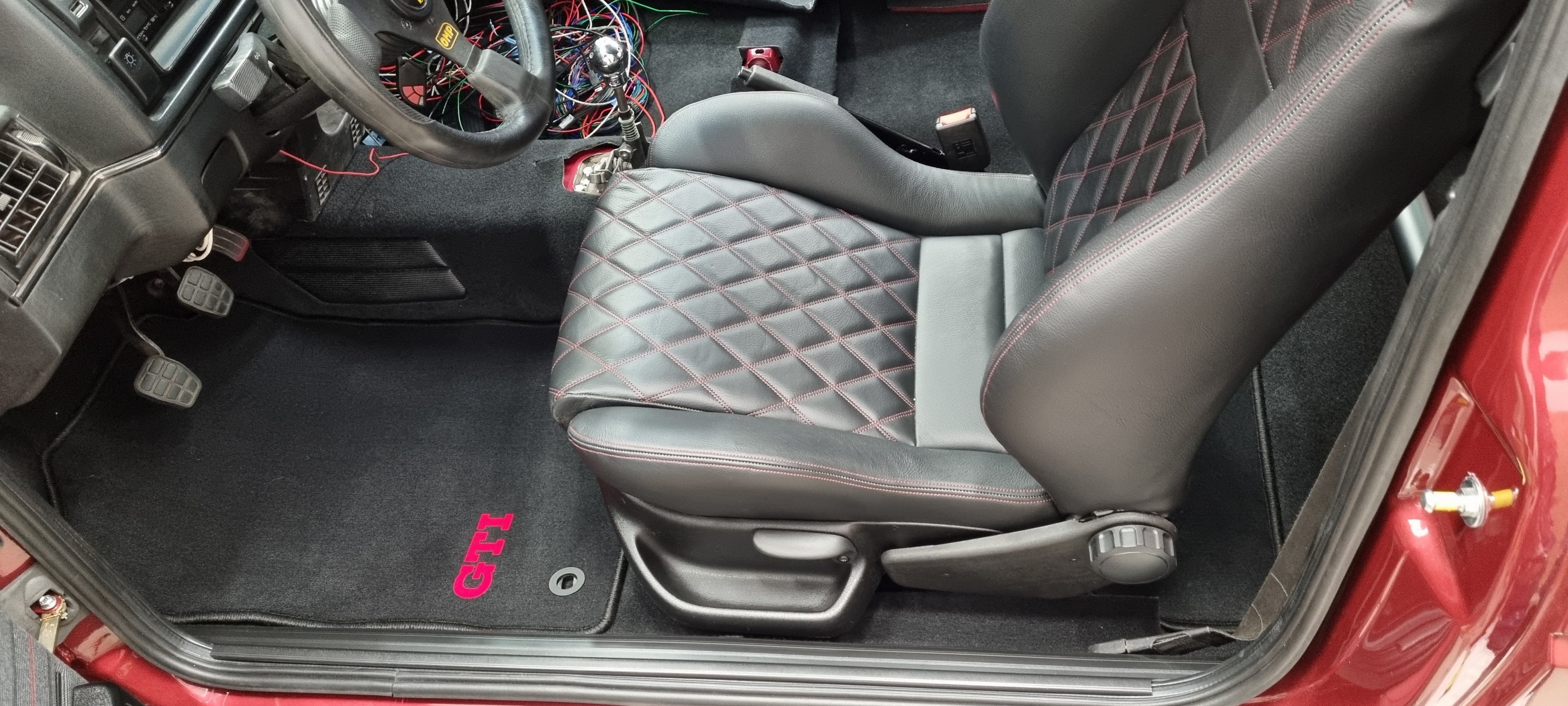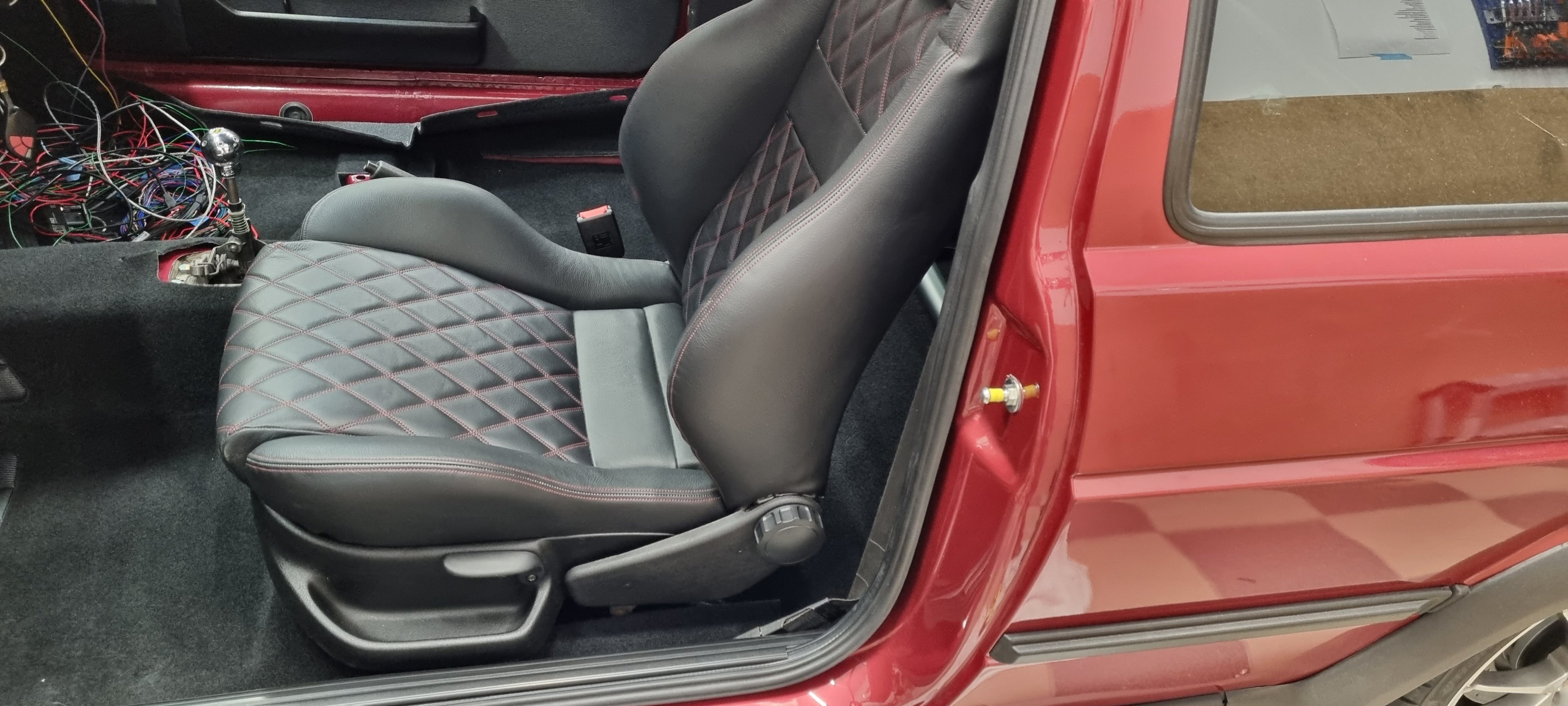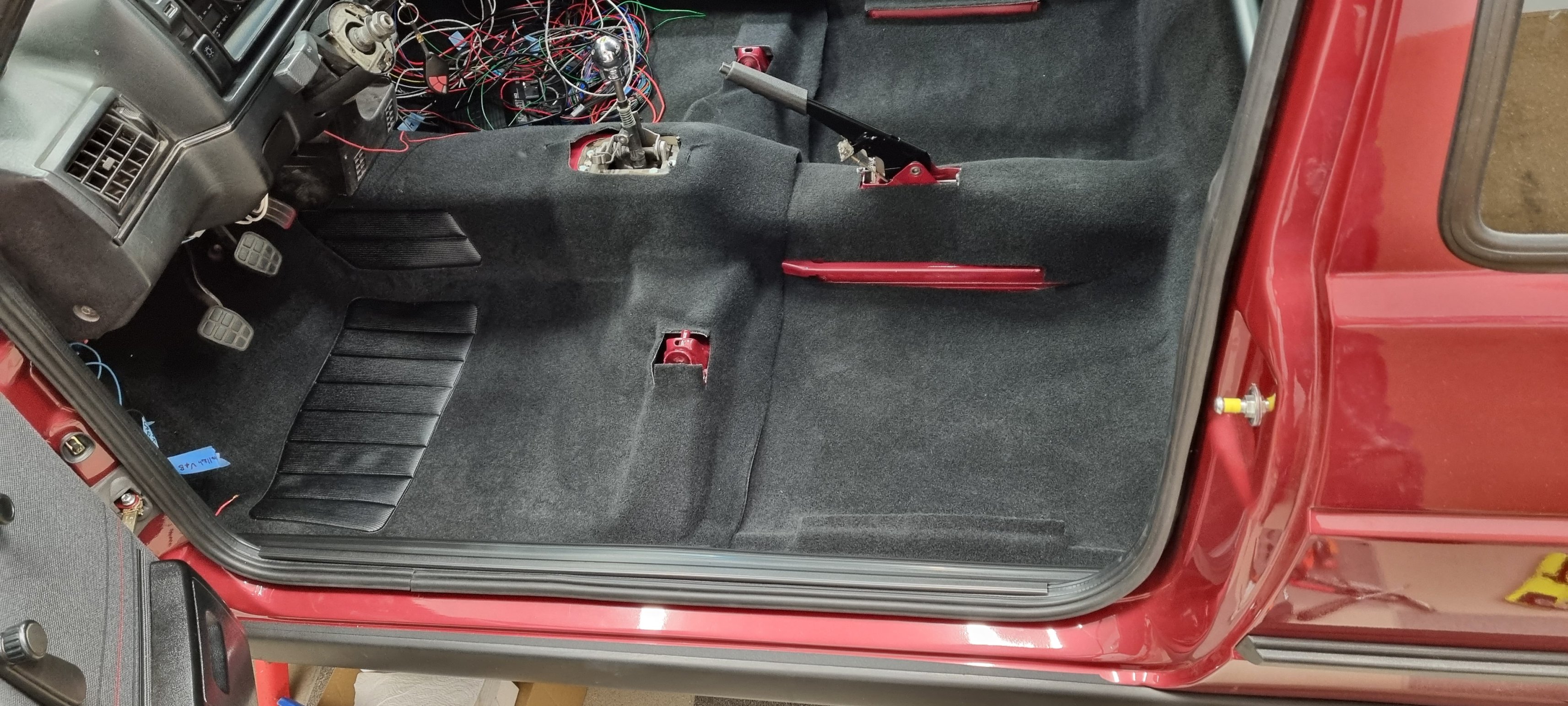 Nu när bilen startar så blev behovet av att kunna sätta sig i bilen och manövrera pedalerna etc plötslig ett behov. Och det är ju alltid roligt att montera in nya grejer som legat länge och väntat på att få komma på plats :)