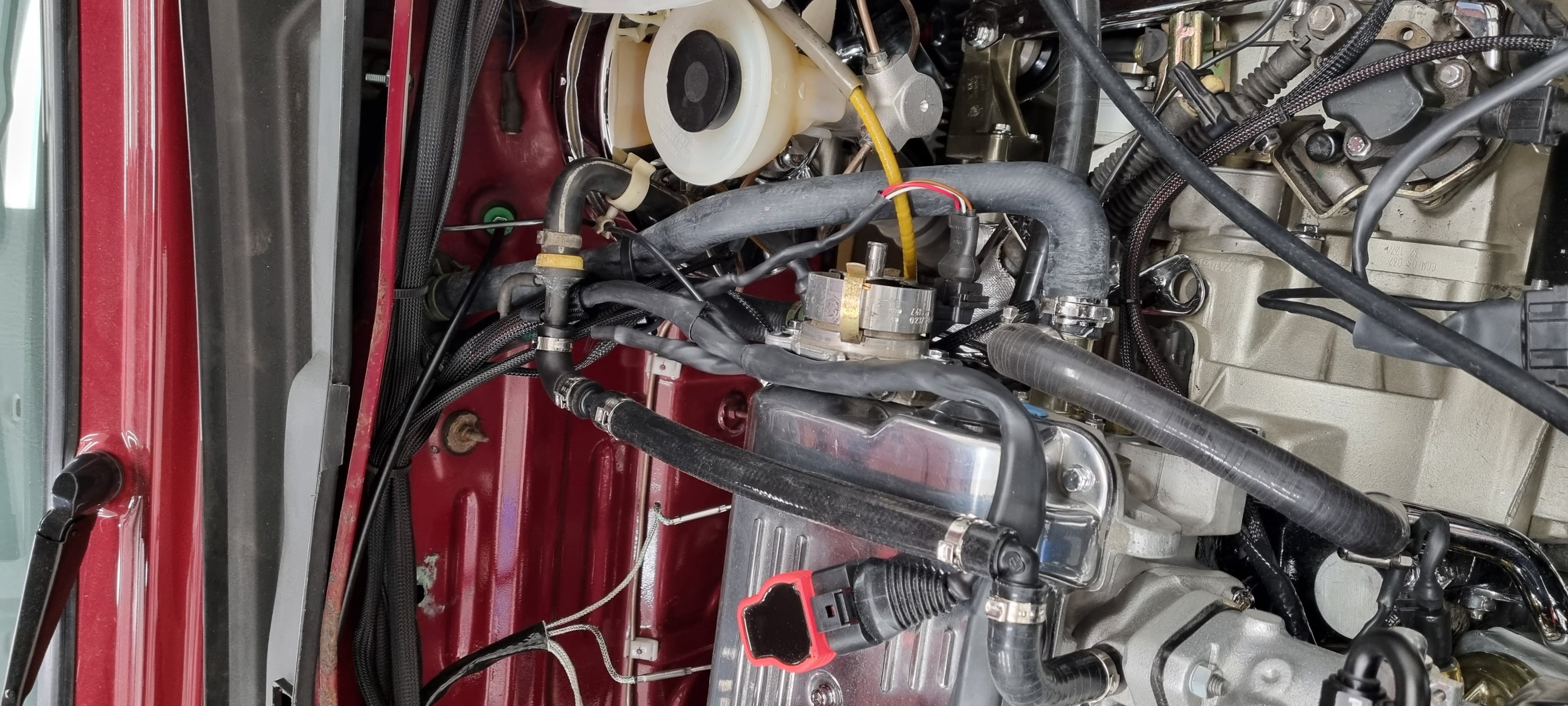 *Hela kabelhärvan inne i bilen till ECU tillsnyggad och undangömd
