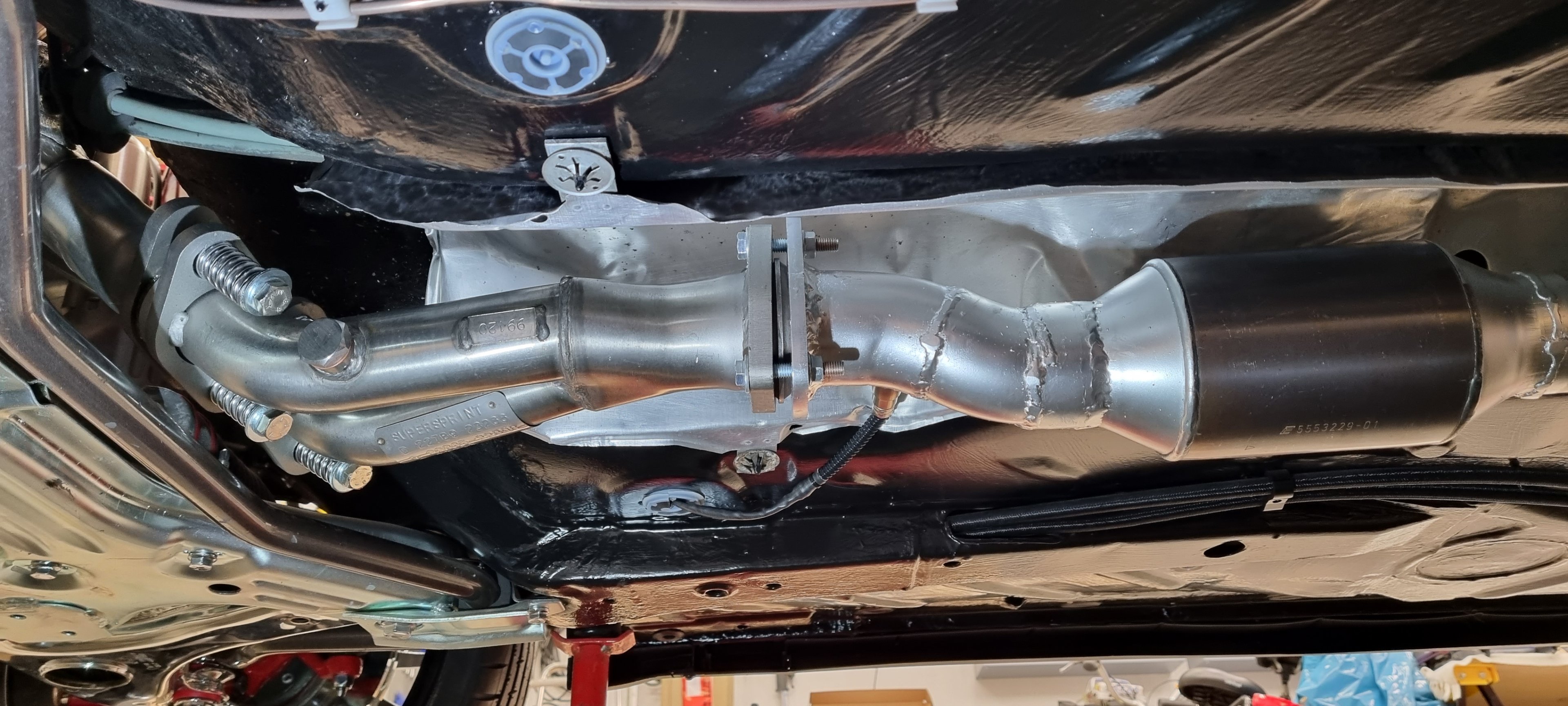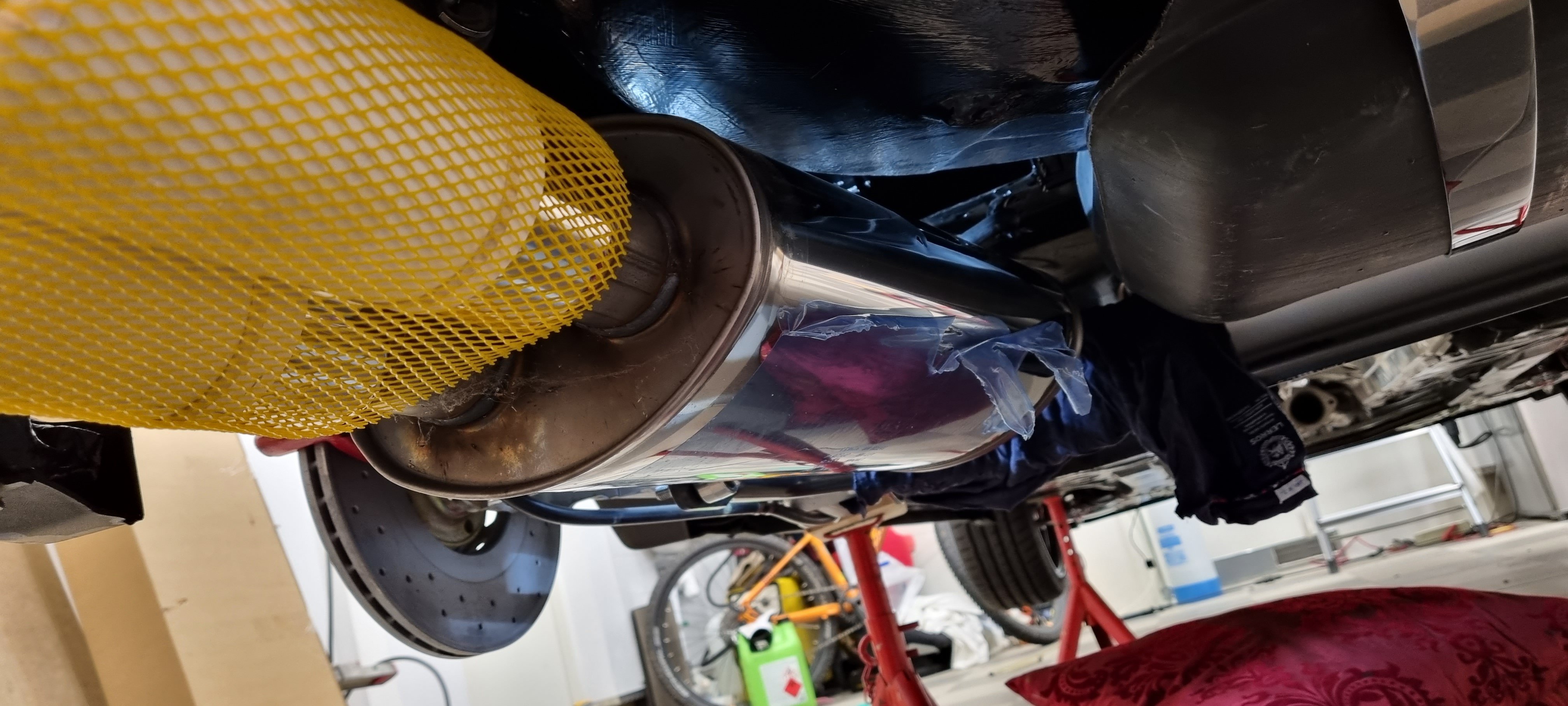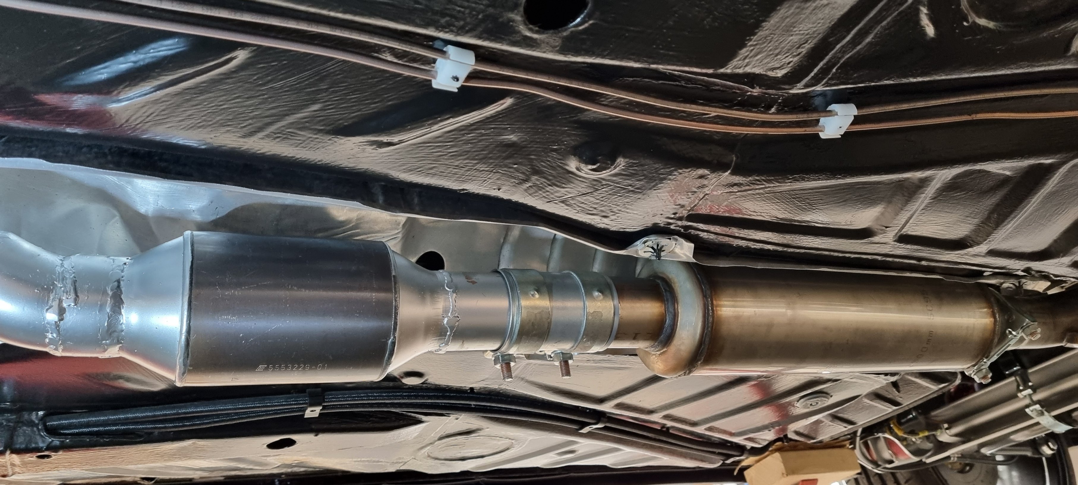 Idag har jag och sonen hjälpts åt att montera upp katten. Och sen justera och spänna ihop hela systemet så det sitter bra fast och inte går emot nånstans. Ni som gjort detta med eftermarknadsavgassystem vet hur lätt det är :p