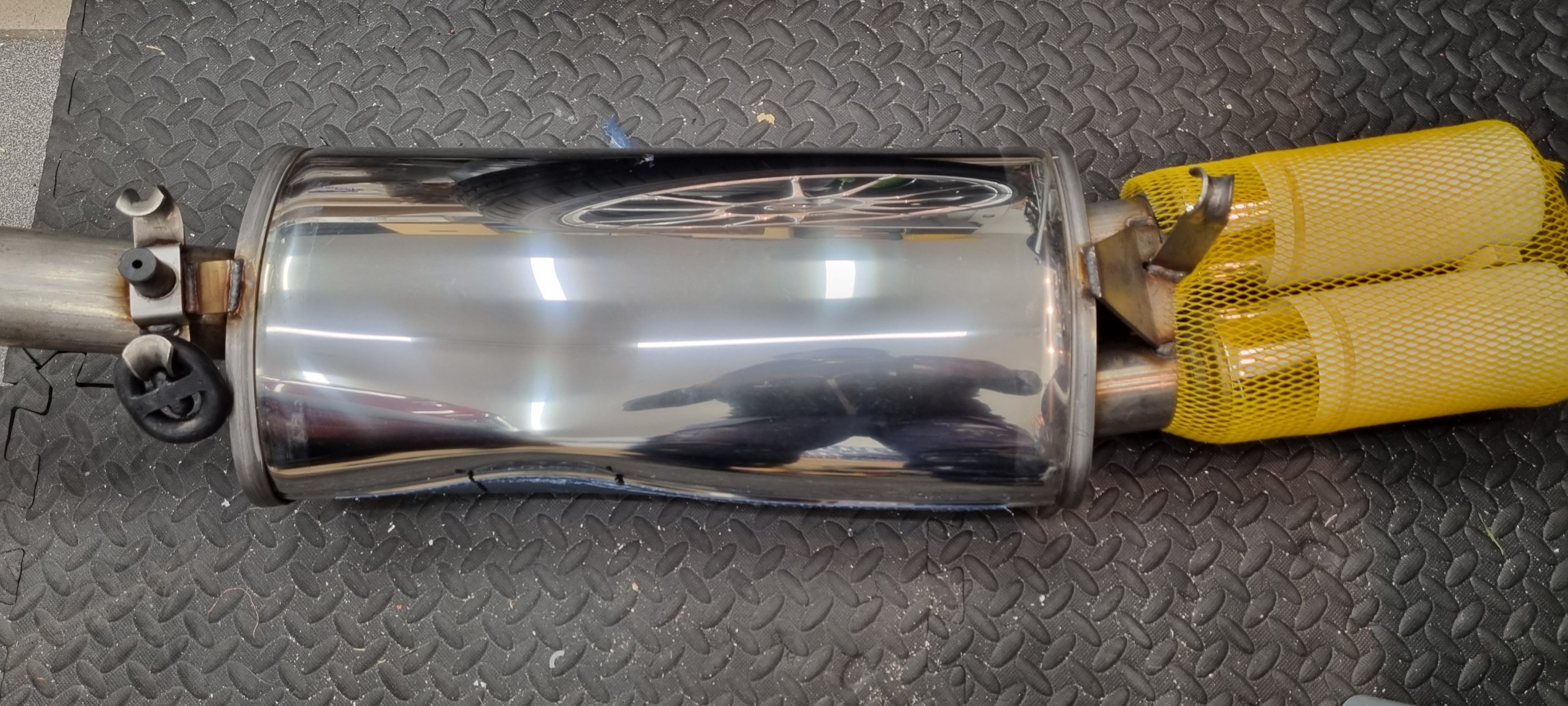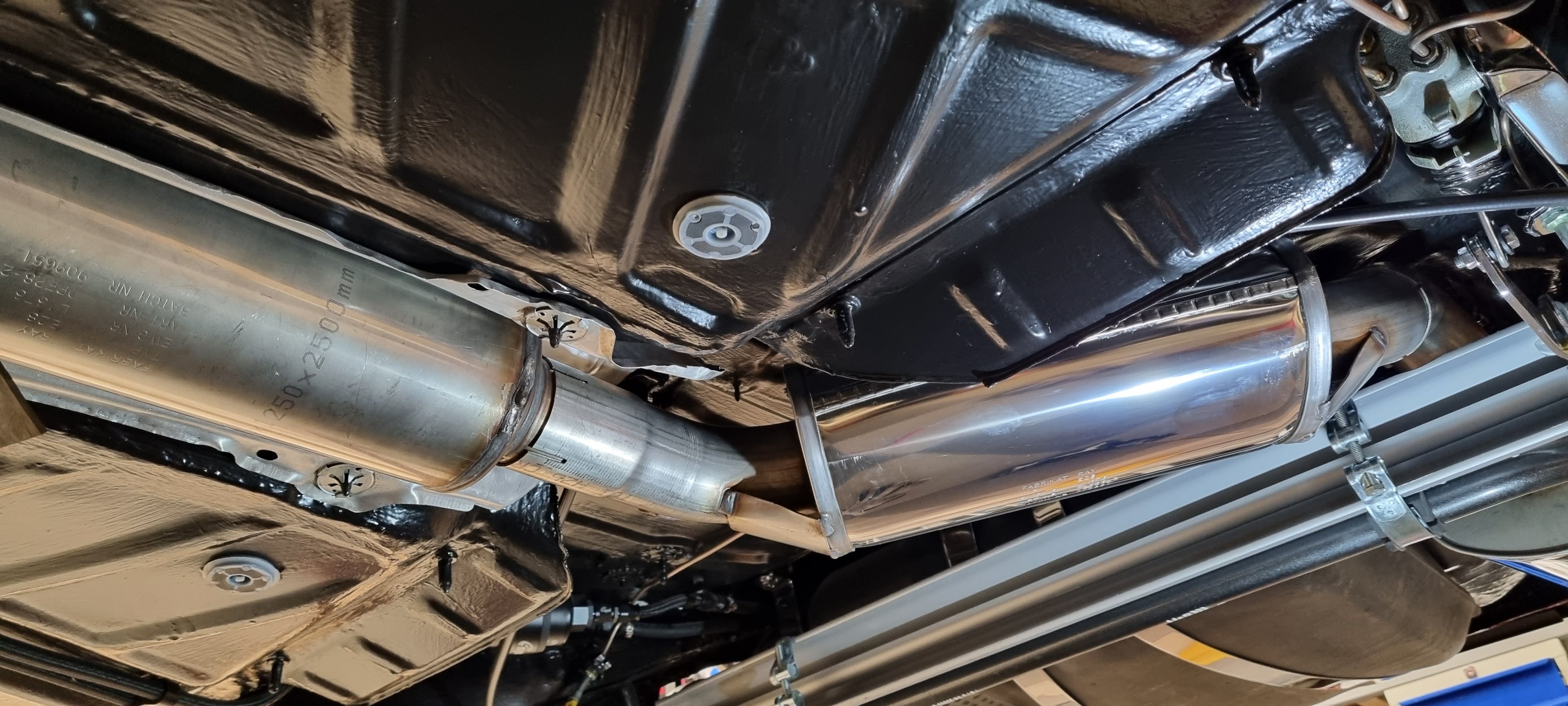 Idag blev det att ta tag i en surdeg. Avgassystem är alltid ett skitgöra, ligga under och krypa, tveksam passform och gummiupphängningar som vägrar glida på :rolleyes: