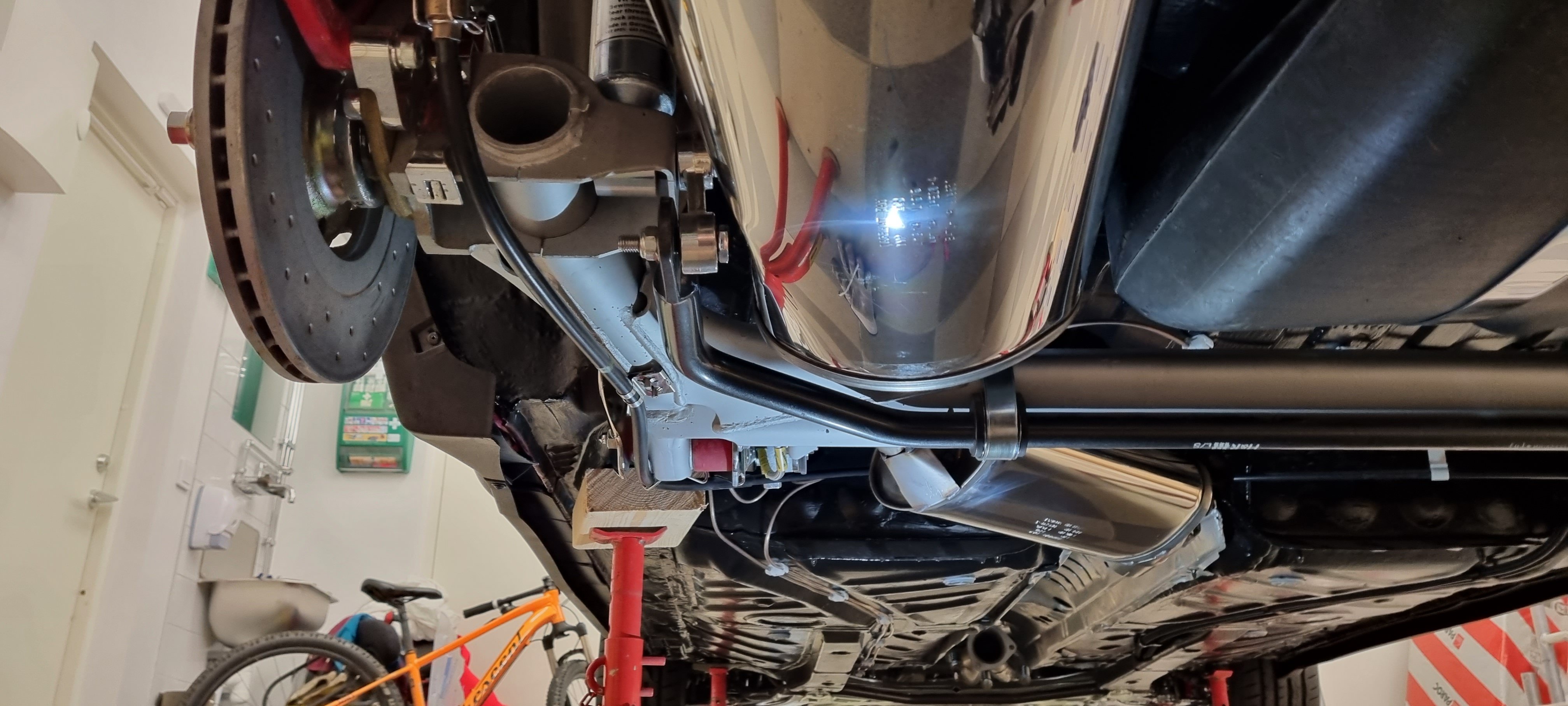 Aha, då är jag med.. inte sett det själv, men undrade om det skulle suttit ett på mon når jqg kollade ett youtube-klipp på en som höll på med avgassystem (Usa eller England).. finns ju eftermarknadsstag från Ultra racing om man vill styva upp.. jag nöjer mig nog med fjäderbensstag.. bak vet jag inte.. stjäl lastutrymme.. (bruksbil du vet).
