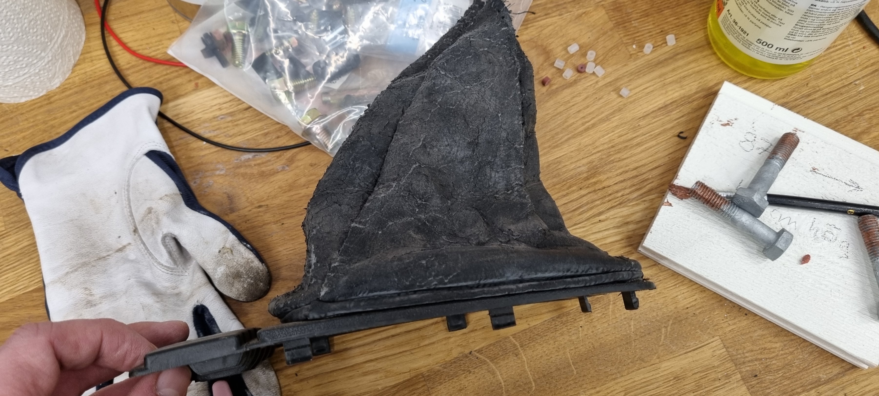 Såhär såg växelspaksdamasken ut efter 30 år, lite trött :p