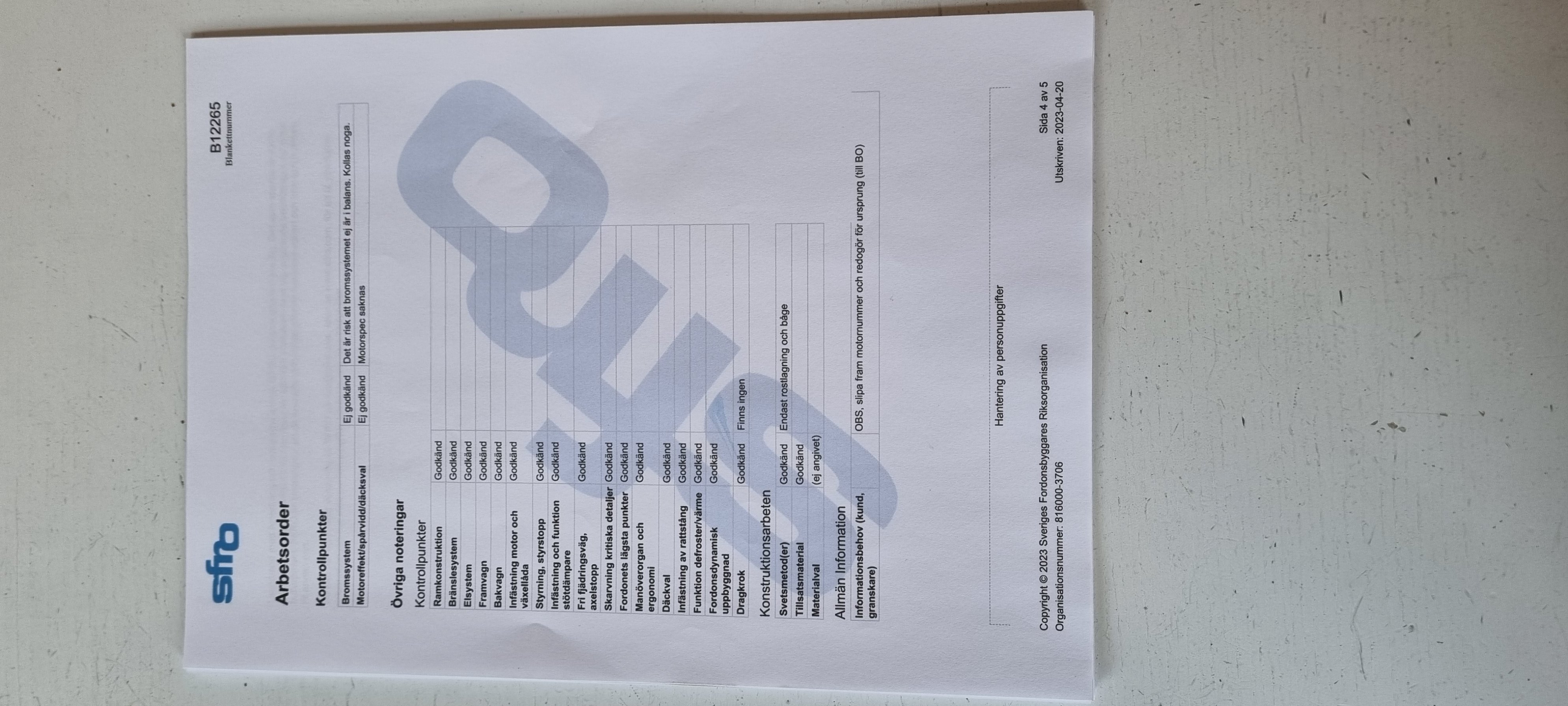 2. Effektintyget saknas (visste vi) så motorspecen kan inte färdigställas. Så fort jag har bromspapper blir denna godkänd.