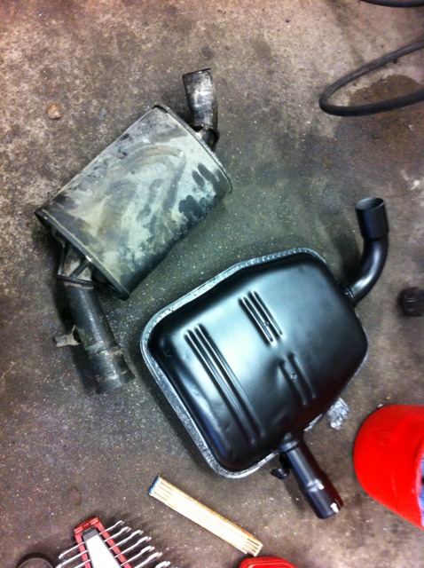 Då jag blivit lite "gubbe" så var jag tvungen att få tyst på avgassystemets brölande, så efter mycket bängel sitter nu denna "original" G60 dämpare på plats, så nu står man nog ut de 114 milen till mantorp utan att bli döv av stereon.