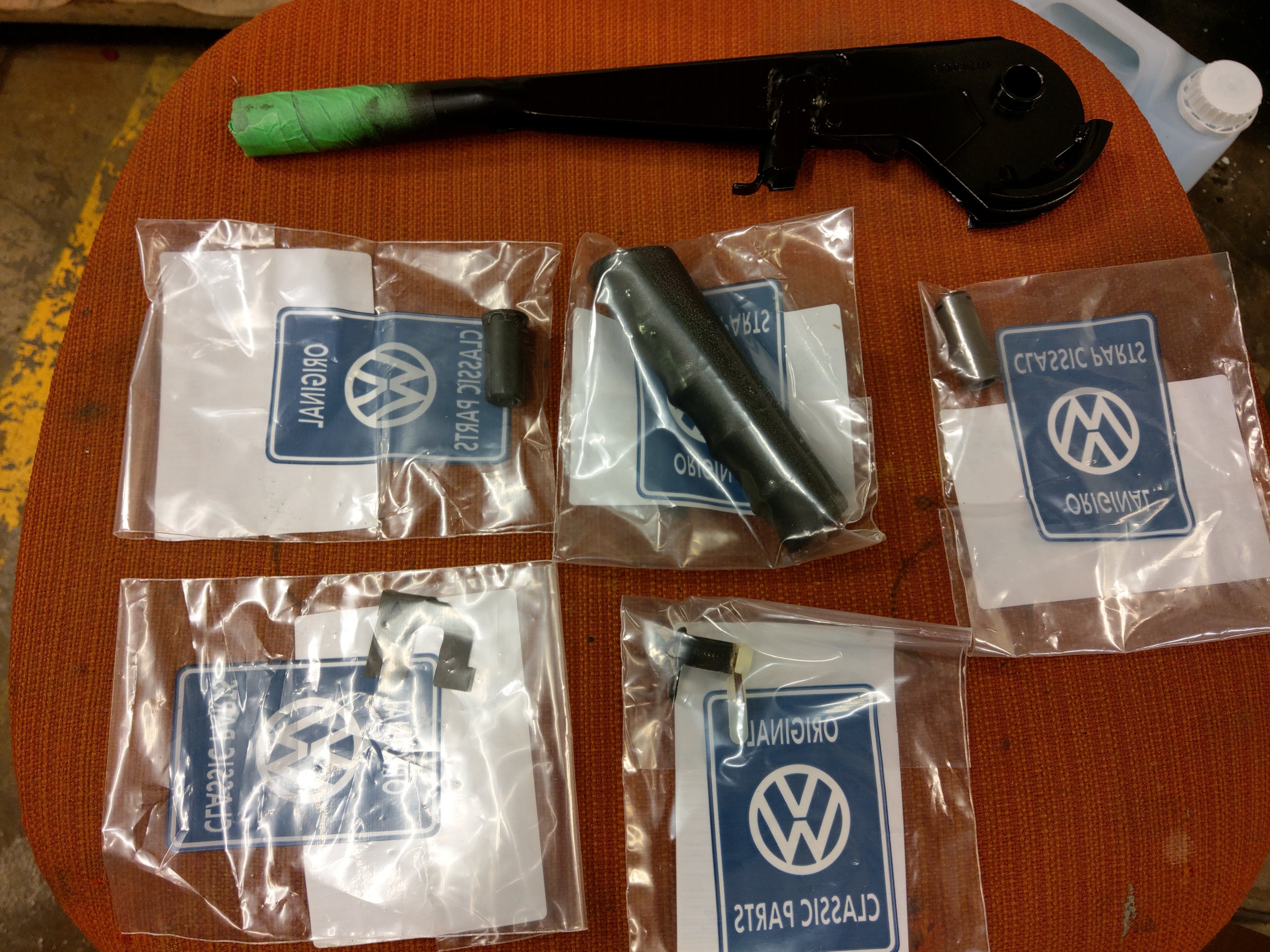 Nästa moment, renovera handbromsen. Denna hade ingen rost utan det räckte att matta ner den och lacka ett par lager halvblank svart. Alla lösa delar hade Classic parts: