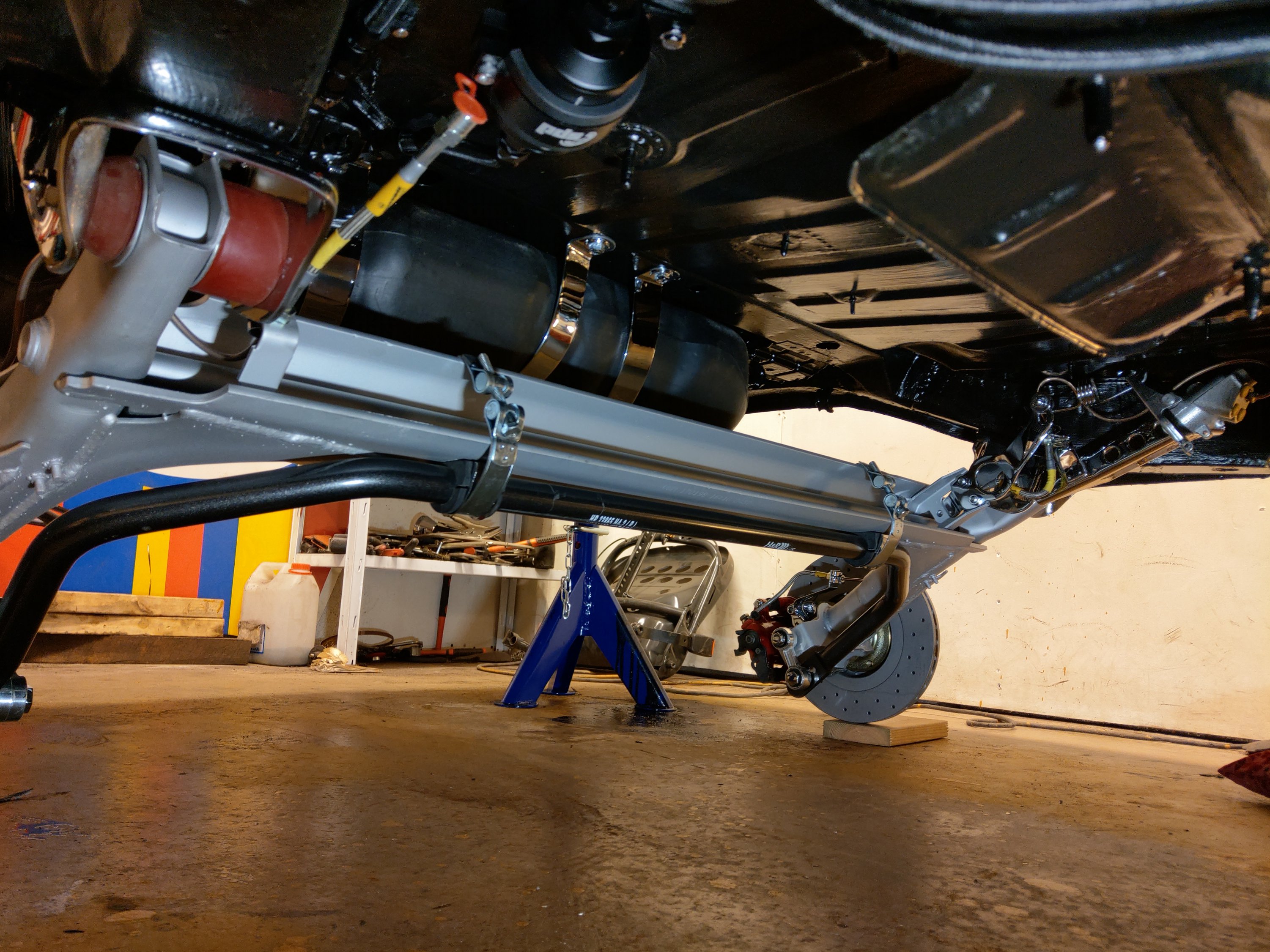 Nu är allt klart för montering av bakaxeln. Ska snickra ihop ett par stöd till detta i veckan så jag kan palla upp den smidigt på rätt ställe, så nästa vecka blir bilen med bakaxel. För första gången sen 2004 :rolleyes: