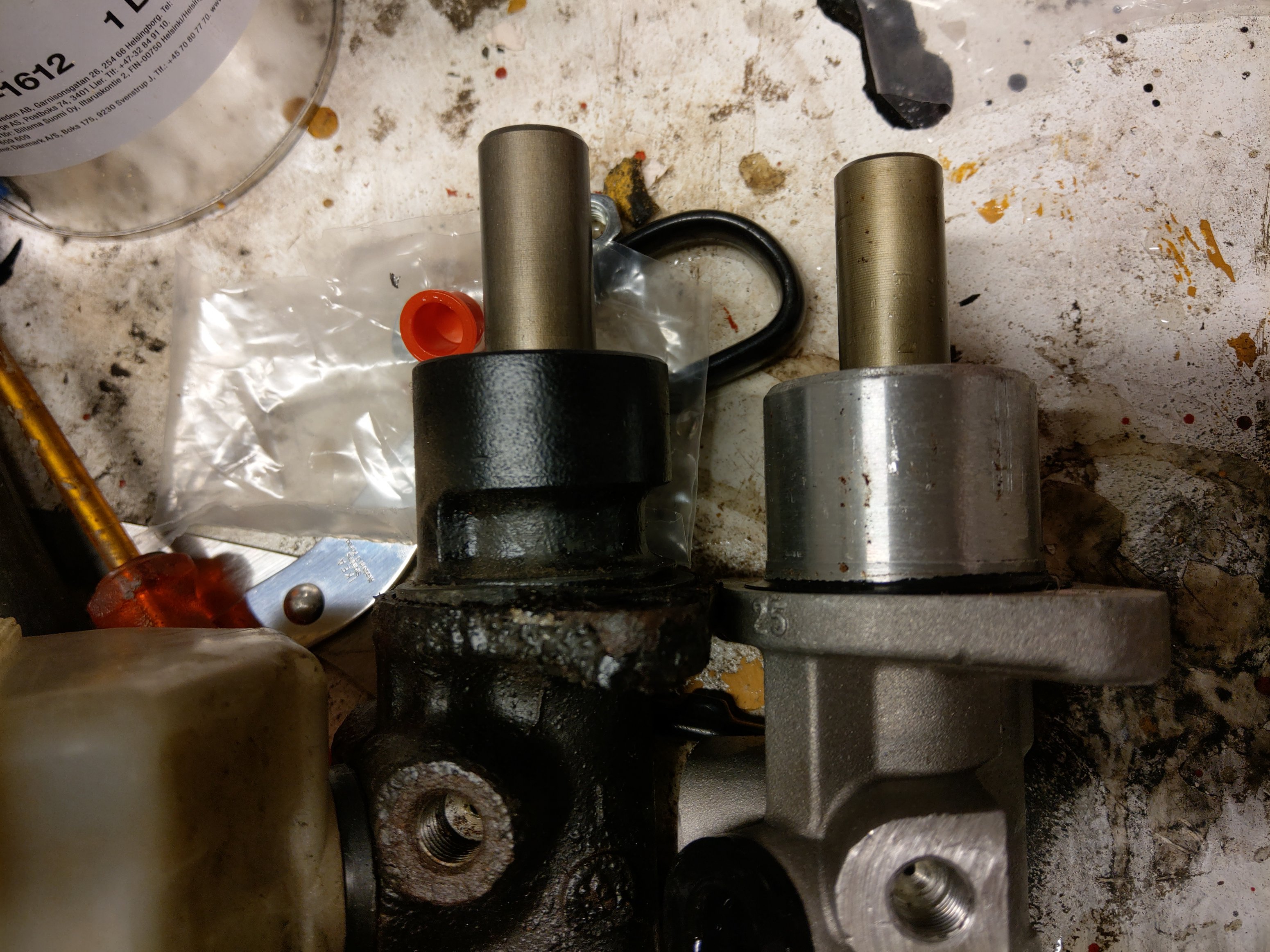 Enda slutsatsen jag kan komma på är att den nya huvudbromscylindern är defekt på ngt sätt. Den har suttit monterad på bilen i drygt 5 år oanvänd och någonting kanske har gått sönder av detta? Det är en 25.4mm cylinder till transporter jag använder.