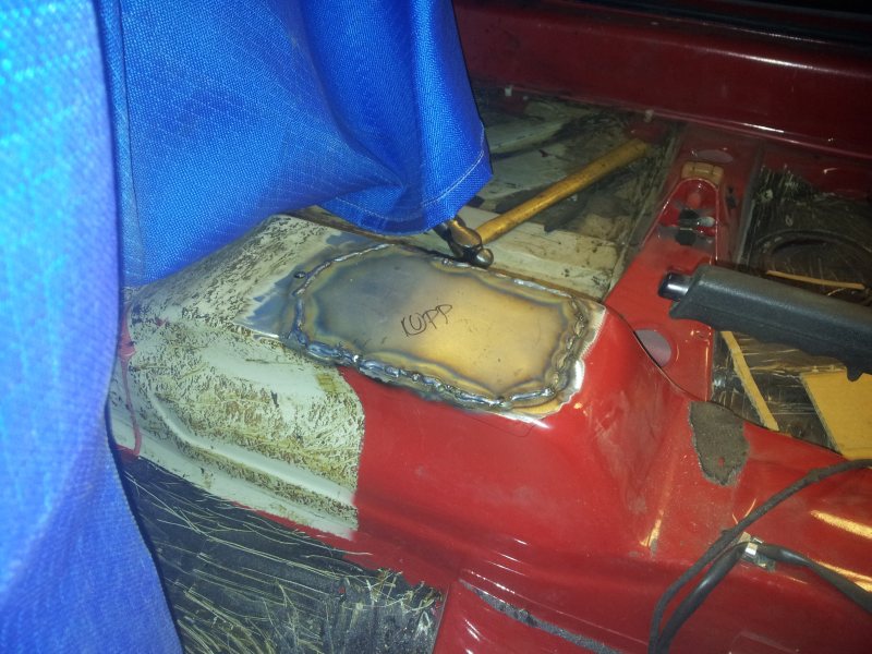 Jaha ... inte hänt mycket sen sist, haft lite ont om motivation och en floridaresa kom ivägen och jobbet ... men idag var jag ute och tittade till bilen och svetsade igen det ena rosthålet i golvet, bara ett kvar där, sen ska jag dit med ny tankupphängning och tillbaka med den så kan jag börja med motorrummet sen :)