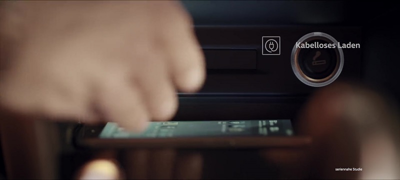I en tidig tiguanreklam på volkswagen-r.de visar de trådlös laddning för mobiltelefon.