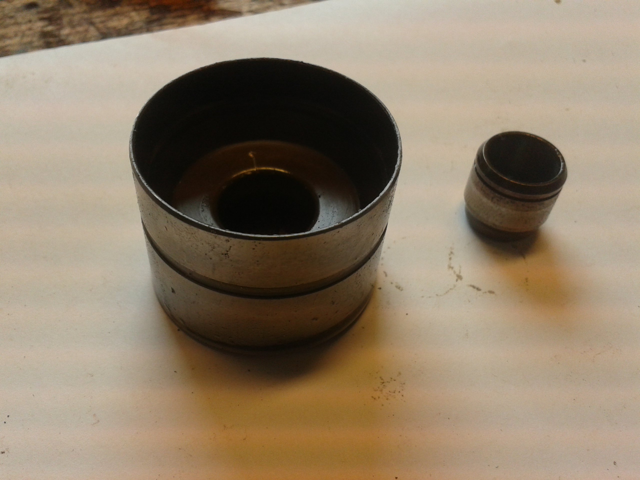 Nu är ventilerna inslipade och monterade med racefjädrar. Fjädrarna provtryckta o uppmätta vid inspänningslängd och max kamlyft. Nu är det tryckarna som skall justeras. Centrumtappen urdragen och hydrauldelen bortslängd. Tapparna är påsvetsade och inslipade till rätt längd. Nu blir det mekaniska istället för hydrauliska. Lite jobb med det är gratis.