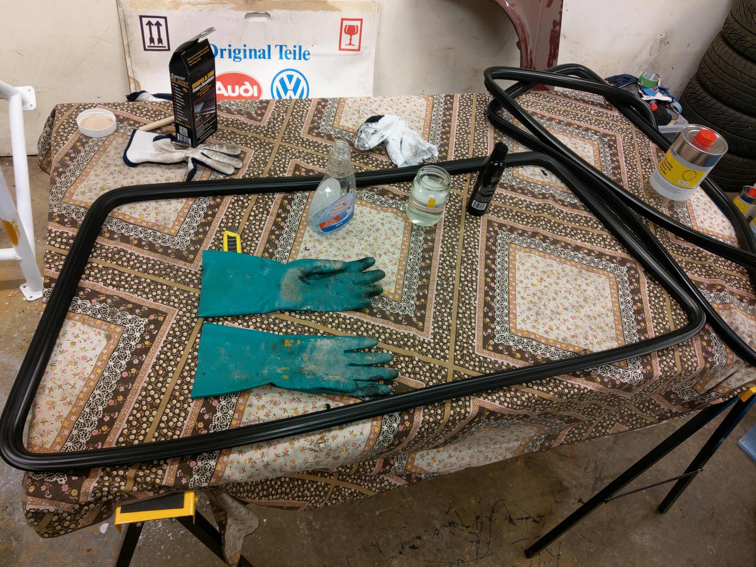 Bra jobbat! Jag gjorde motsvarande rengöring av targaluckorna på caben i höstas. Nu ligger dom för omklädning med skinn.