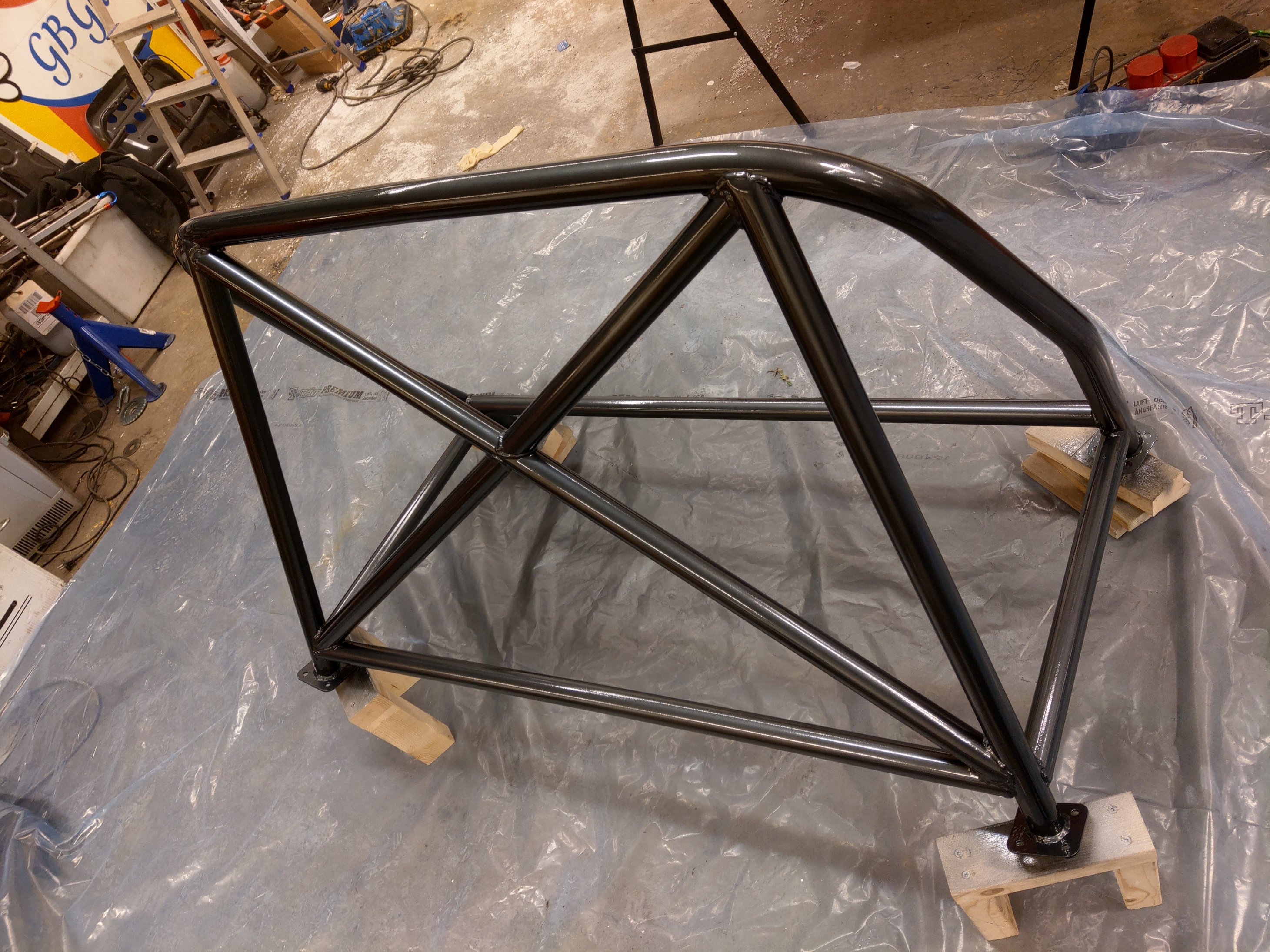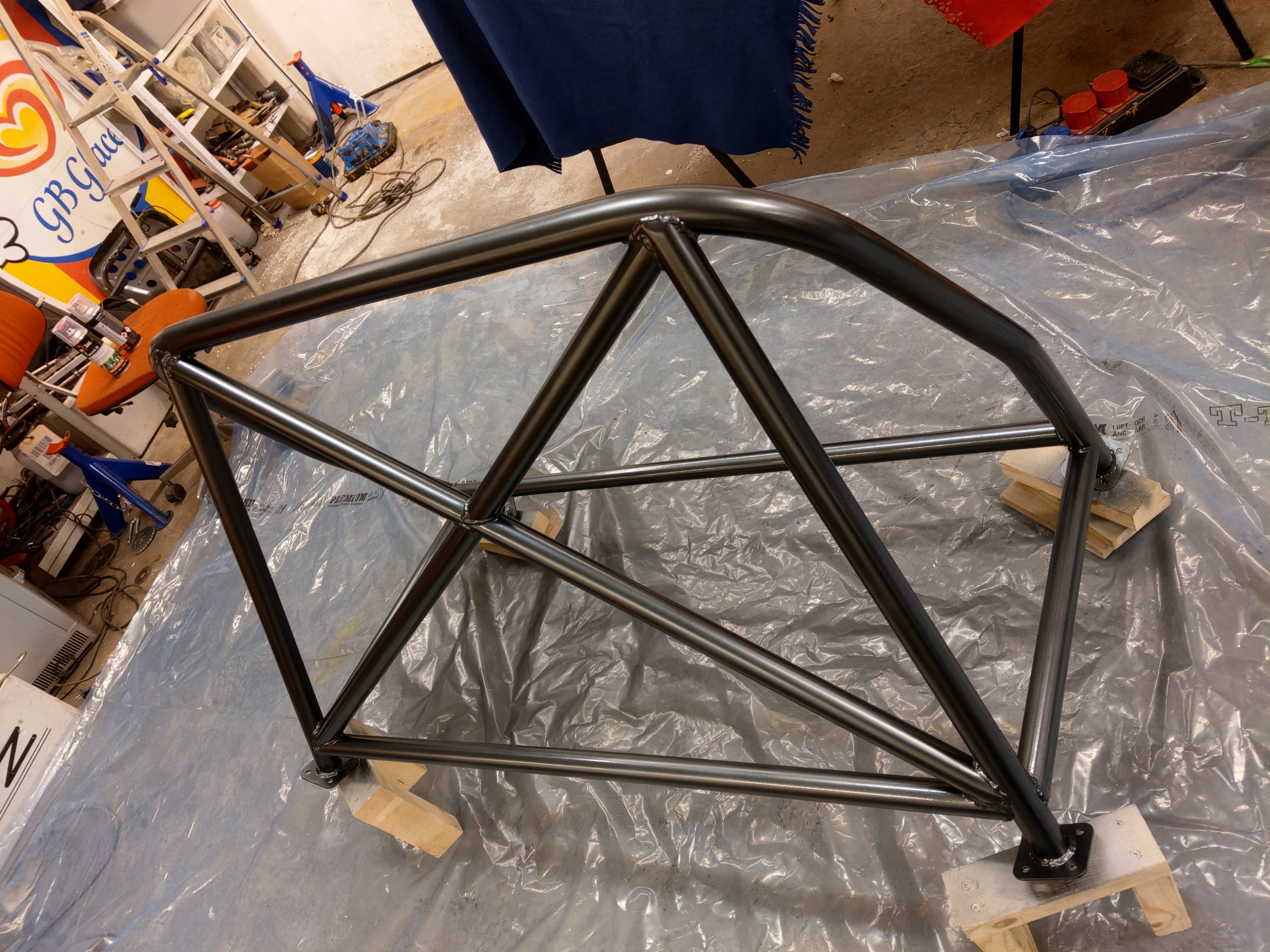 Matt för att den inte ska blänka inne i bilen och kulören för att likna ett obehandlat stålrör. Blev bra tyckte jag :)
