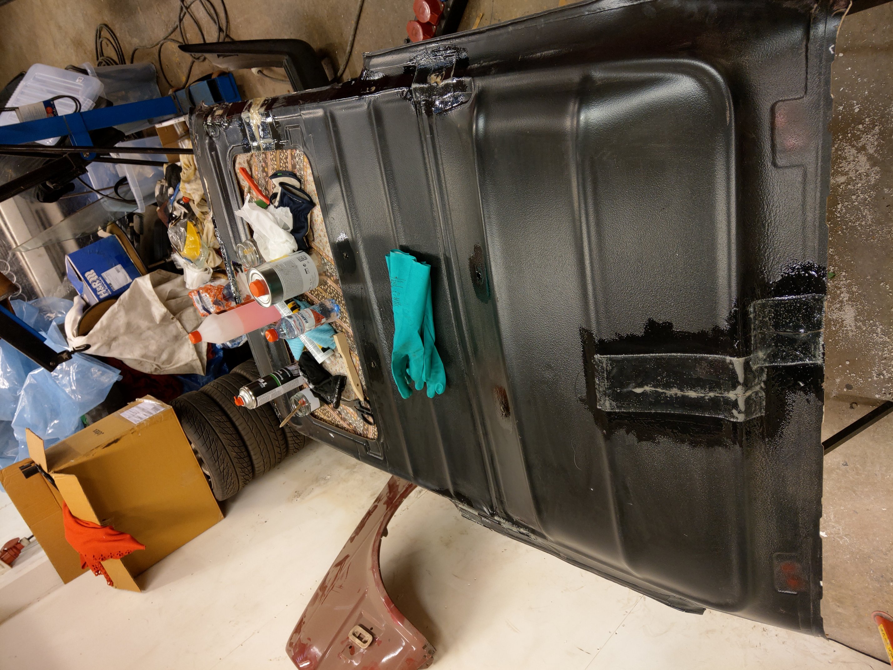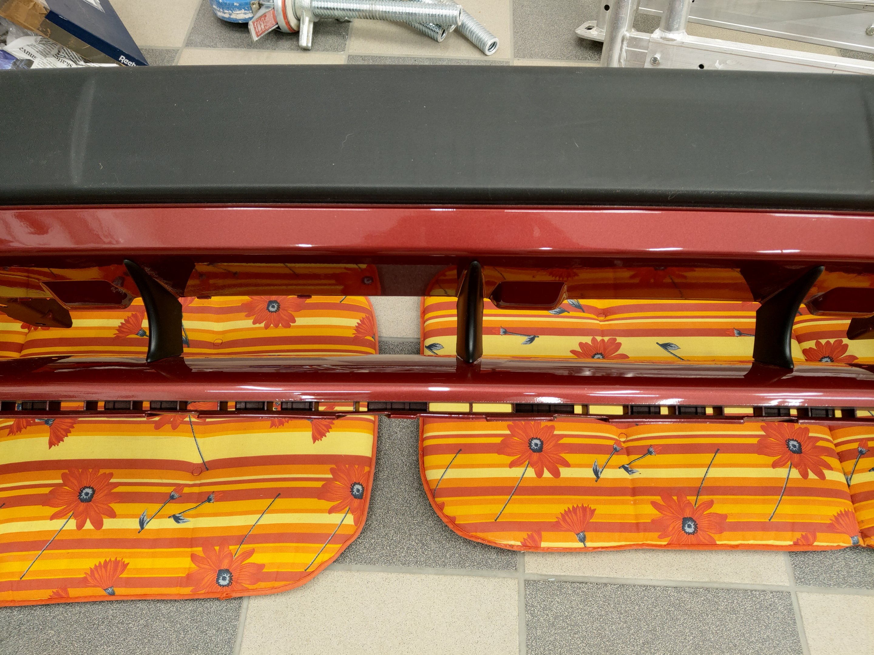 Nu skulle jag säga att baksidan är klar. Ska borra lite hål som blivit igenplastade till kurvhandtagen och fylla i lite sprickor på framsidan samt en sista slip/tvätt på framsidan, sen är det dags för tyg.