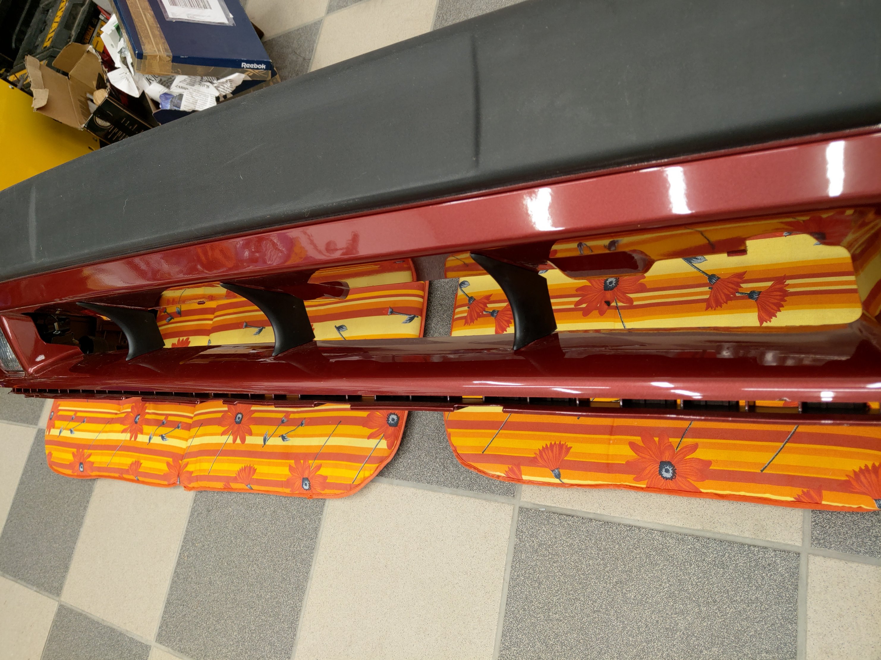 Fortsatte pilla med stötfångaren. Först de 3 små hajfenorna från classic parts: