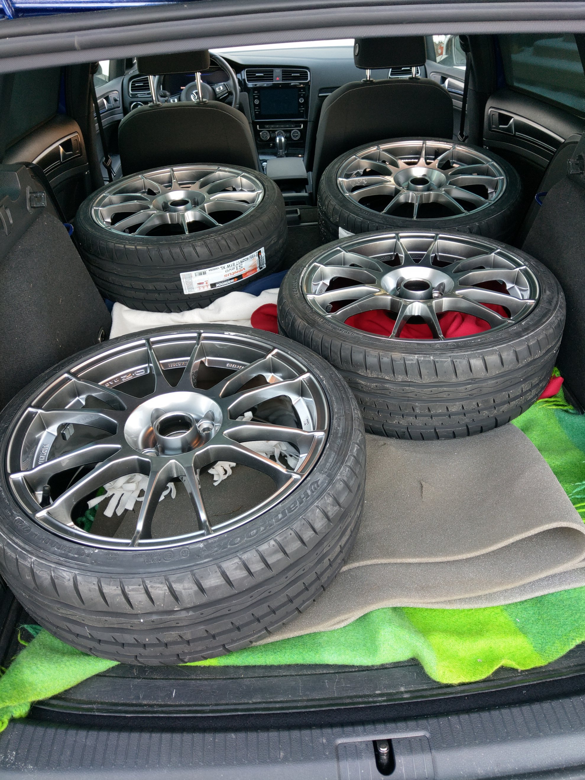 Idag så fick satt jag på däck på Fälgarna, OZ Ultra Leggera 7*17. 195/40-17 S1 Evo blev det. Inget särskilt däck, utan detta är bara för att ha ngt att putta runt bilen på de närmaste åren tills den är klar. Sen blir det nått klistrigt :cool: