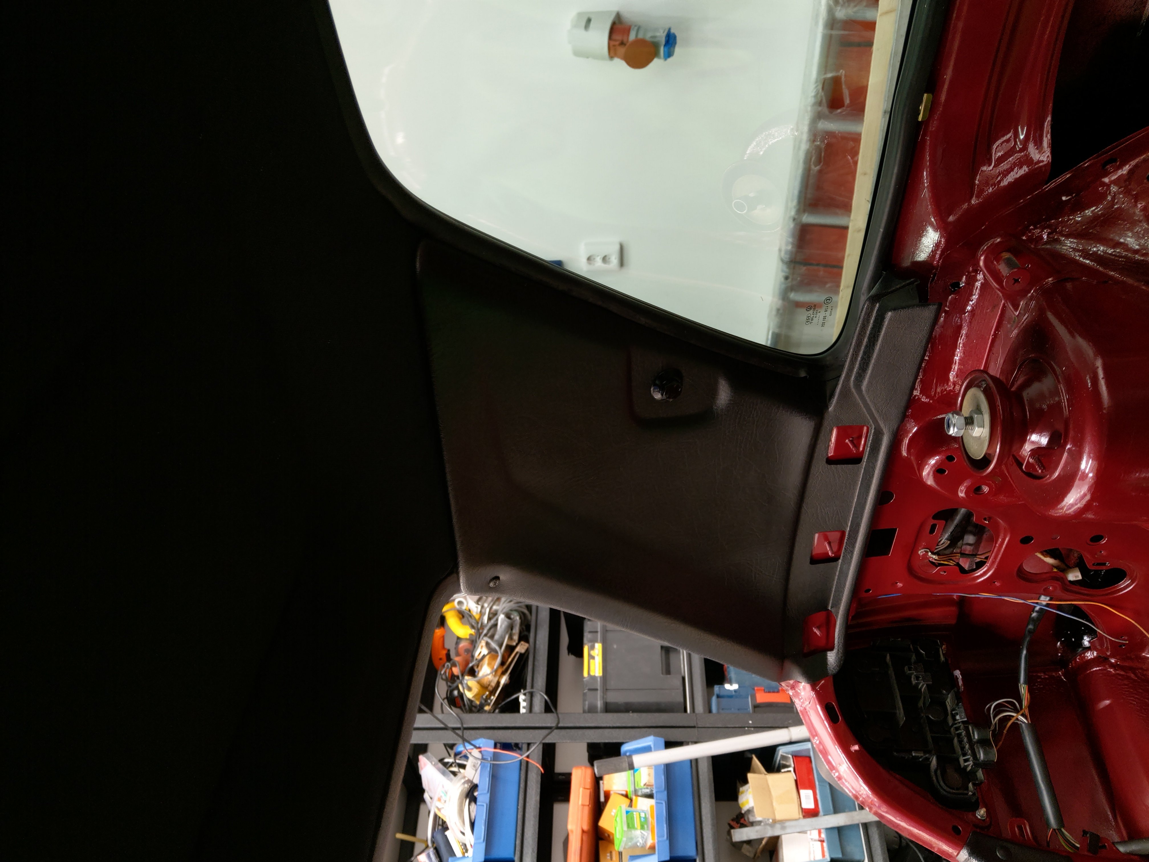 Plastpanelerna runt bakluckan med nya clips: