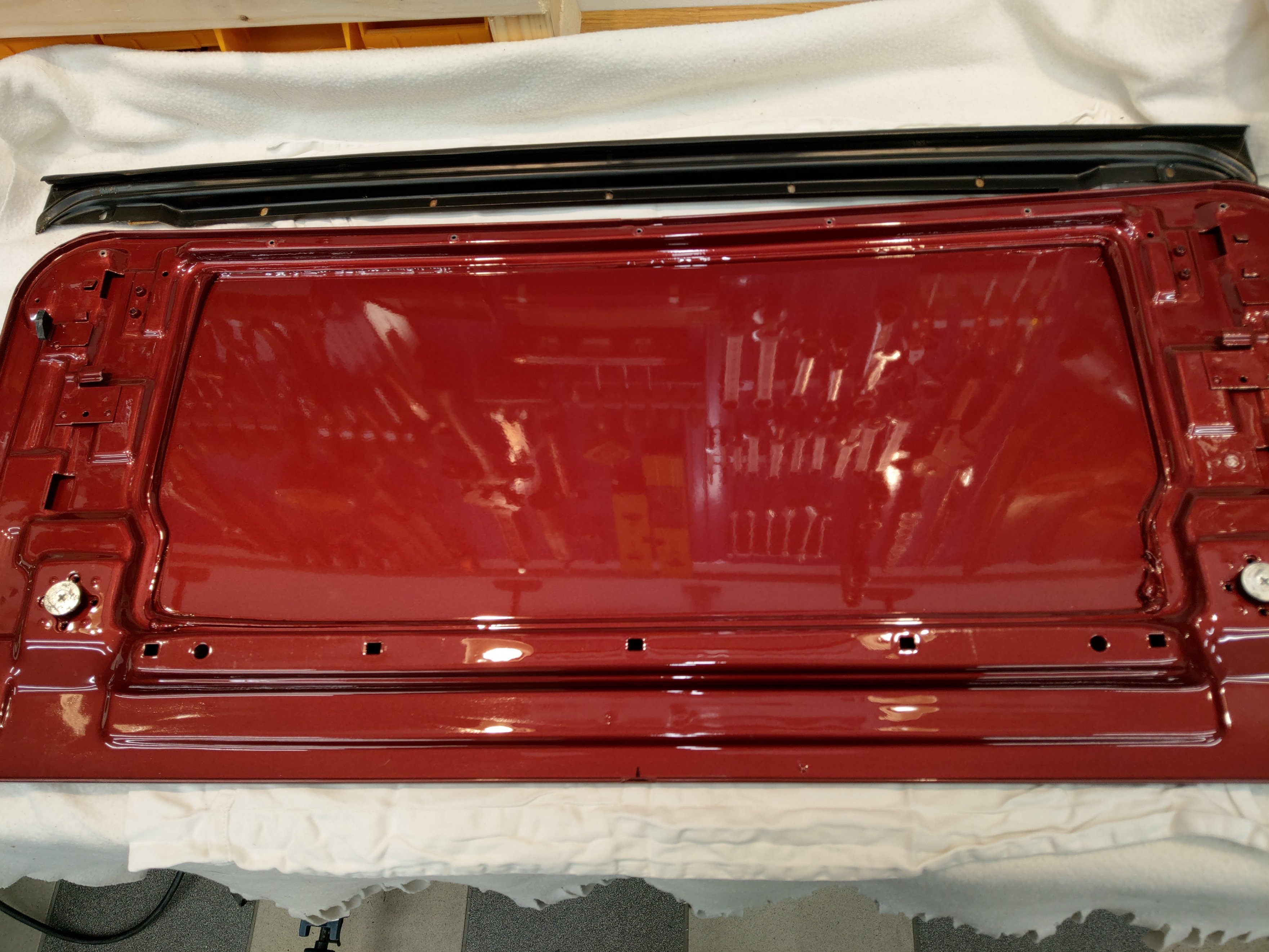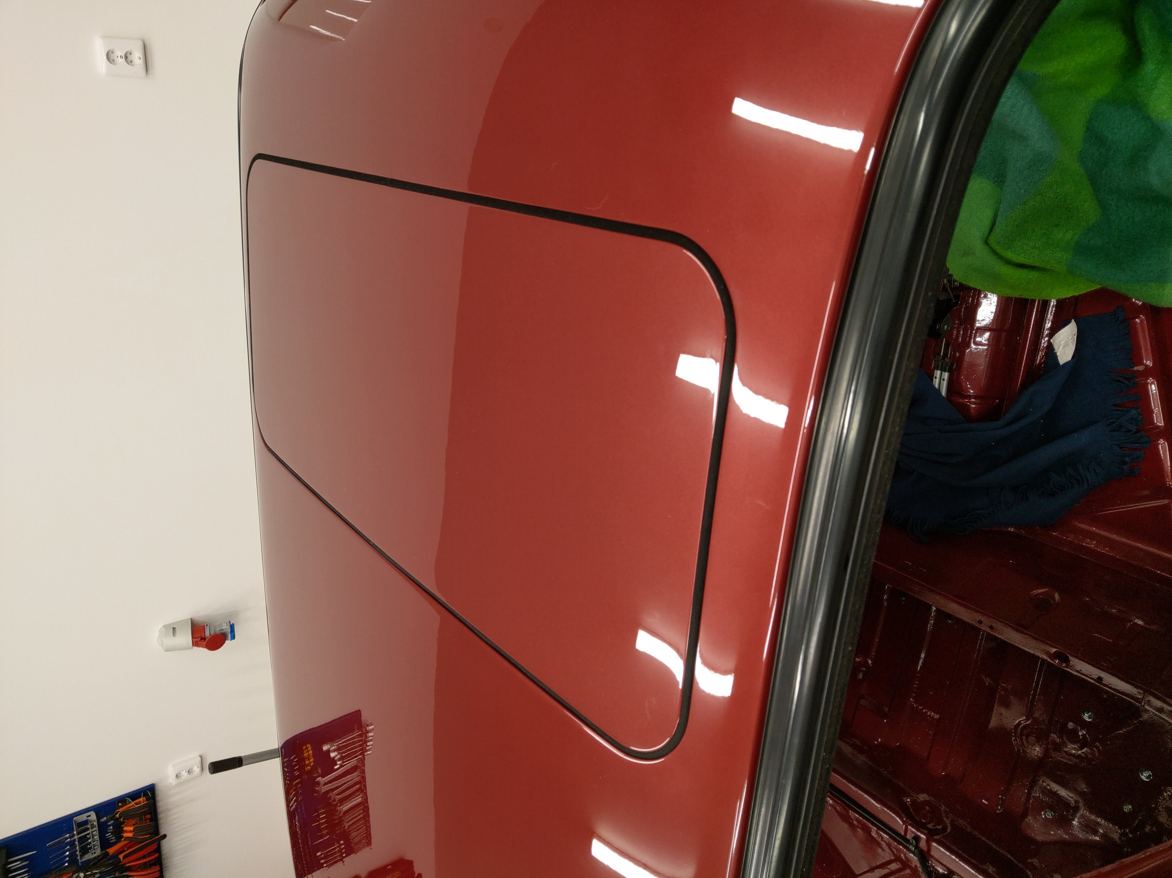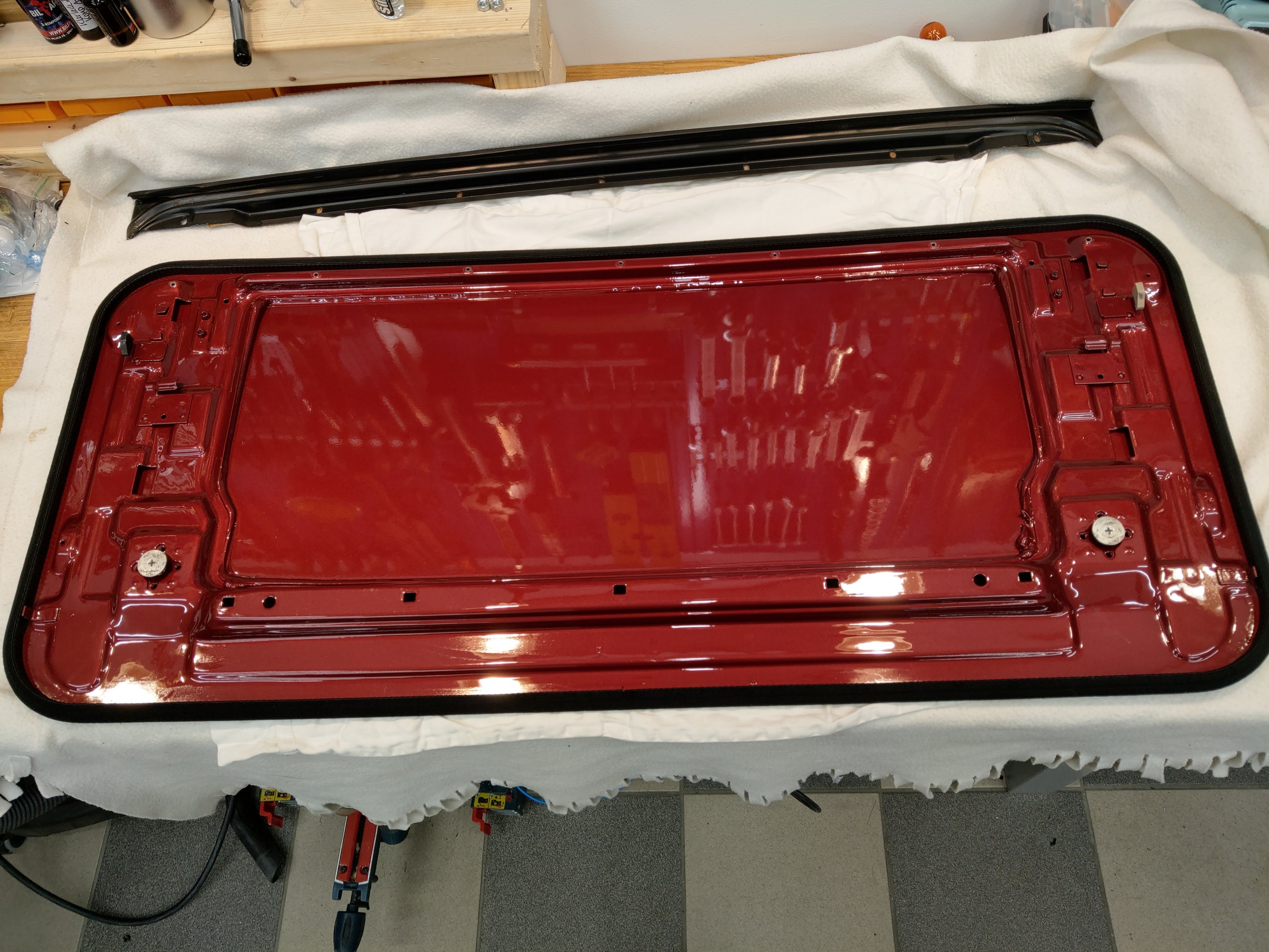 Blev nästan nöjd, listen runt luckan är så ny att den är lite för stor och hindrar att justera in den helt perfekt, skulle vilja ha en halv mm bättre flush på några ställen. Men låter det vara nu, listen blir säkert lite komprimerad om den får stå några månader i garaget med luckan stängd.
