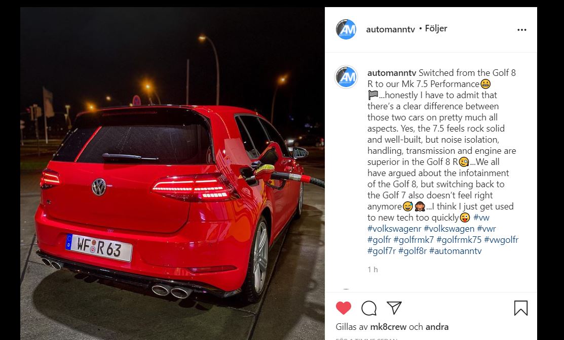 Där mäter det upp den till 15,9 också!. MEN 0-200!!!. Det är F-n bra!, ca 2sek snabbare än Mk7.5 R med liknande effekt!. Så blir kul när de bromsar den första!. Känns som en ger lite mer än 320hk.. :)