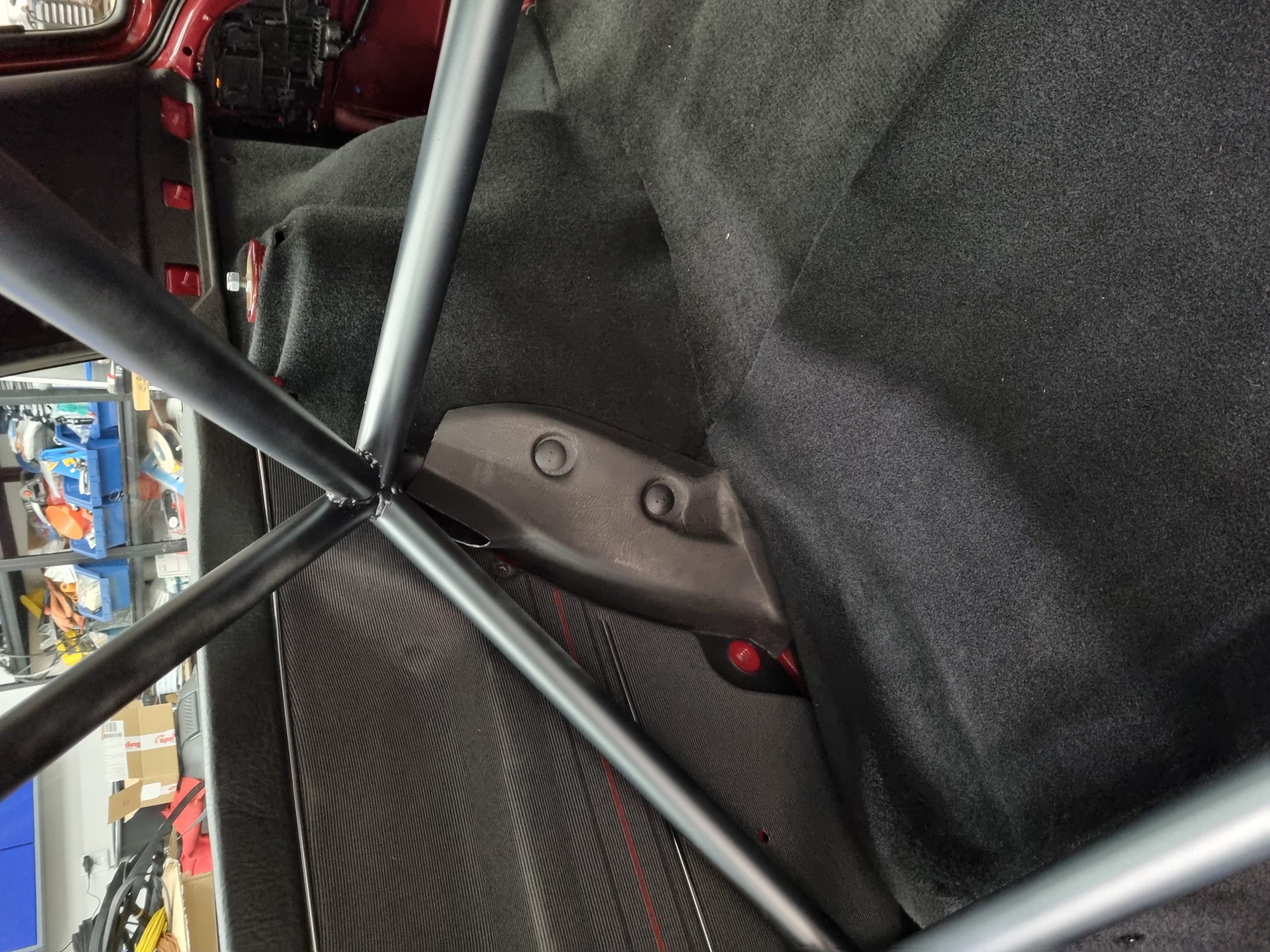 Men sista delen, plastpanelen som sitter bakom ryggstöden på hjulhusen, den gick inte att tvinga dit på något sätt alls och den behövs för att hålla tyg etc på plats. Så fattade beslutet att kapa dessa igår, innebär att jag måste ha nya sådana om jag sätter in baksätet igen tyvärr. Men har ngt vagt minne om att jag kan ha det på lagret :confused: