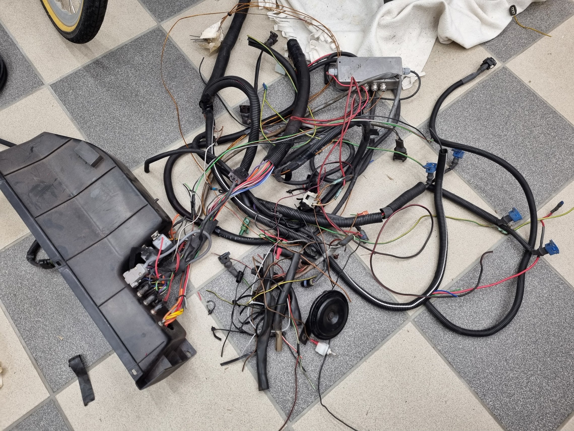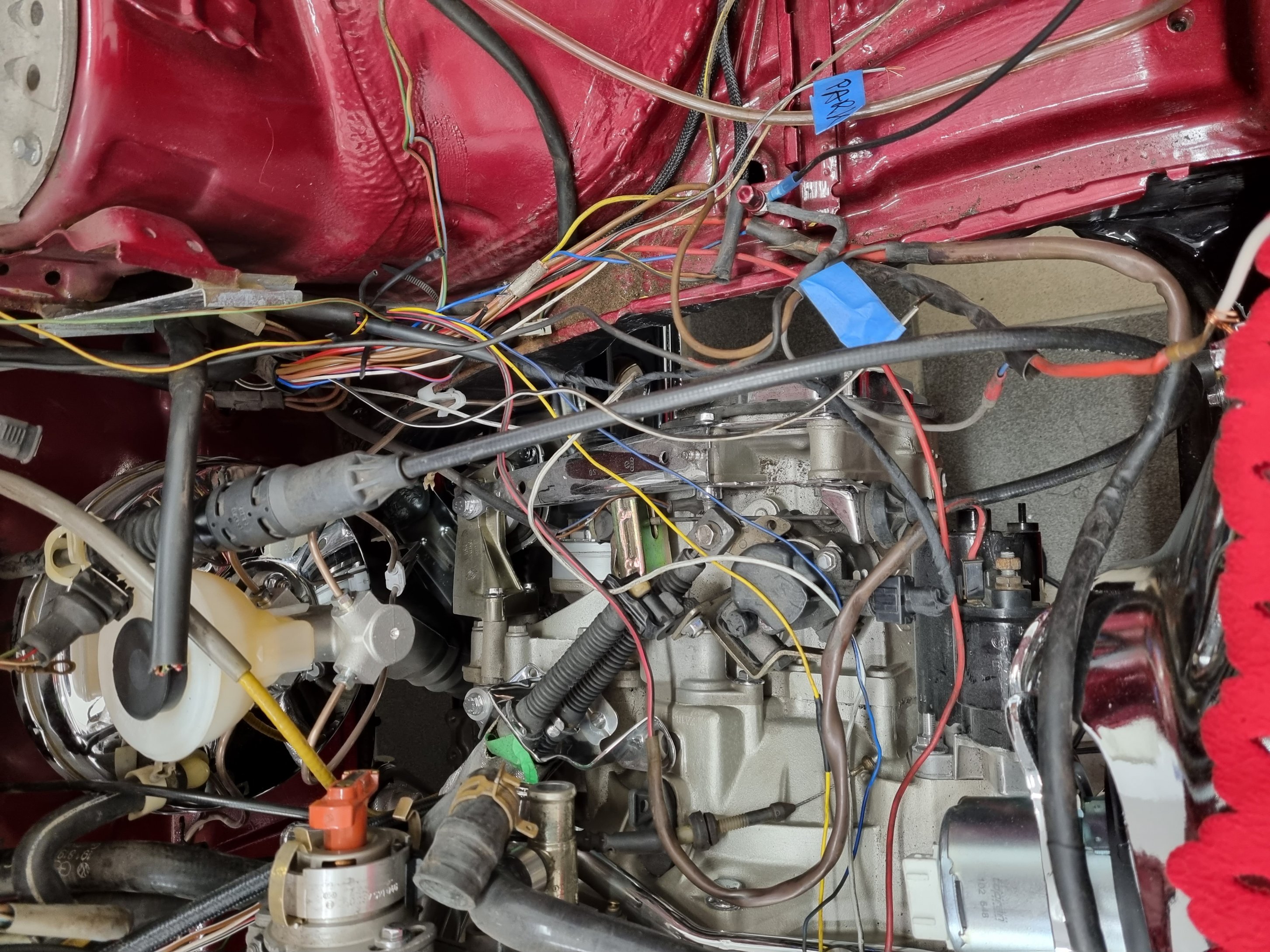 Allt detta innebär att det enda som skall vara kvar i motorrummet är några givarkablar, p-ljus och blinkers. Resten skall bort.