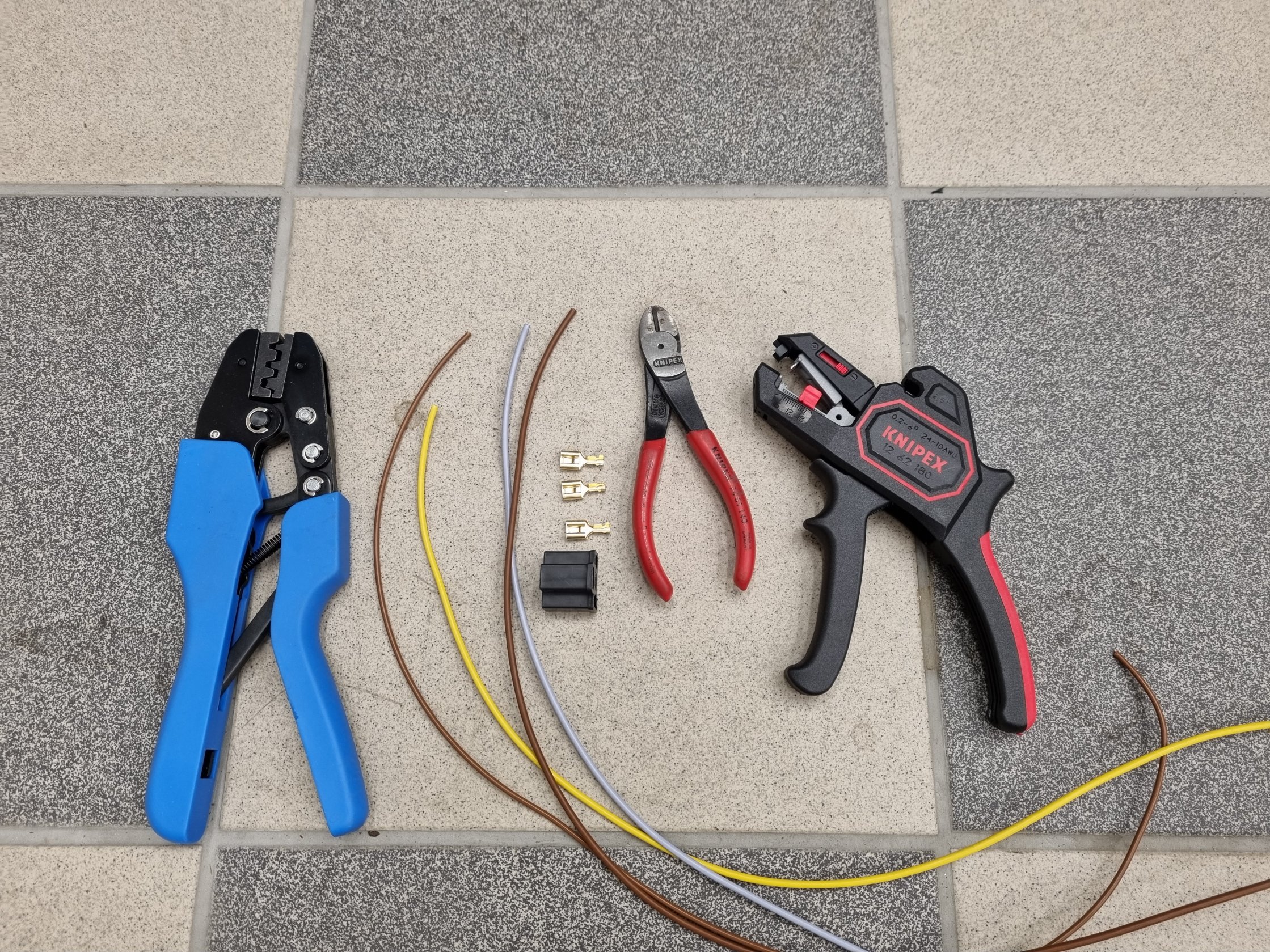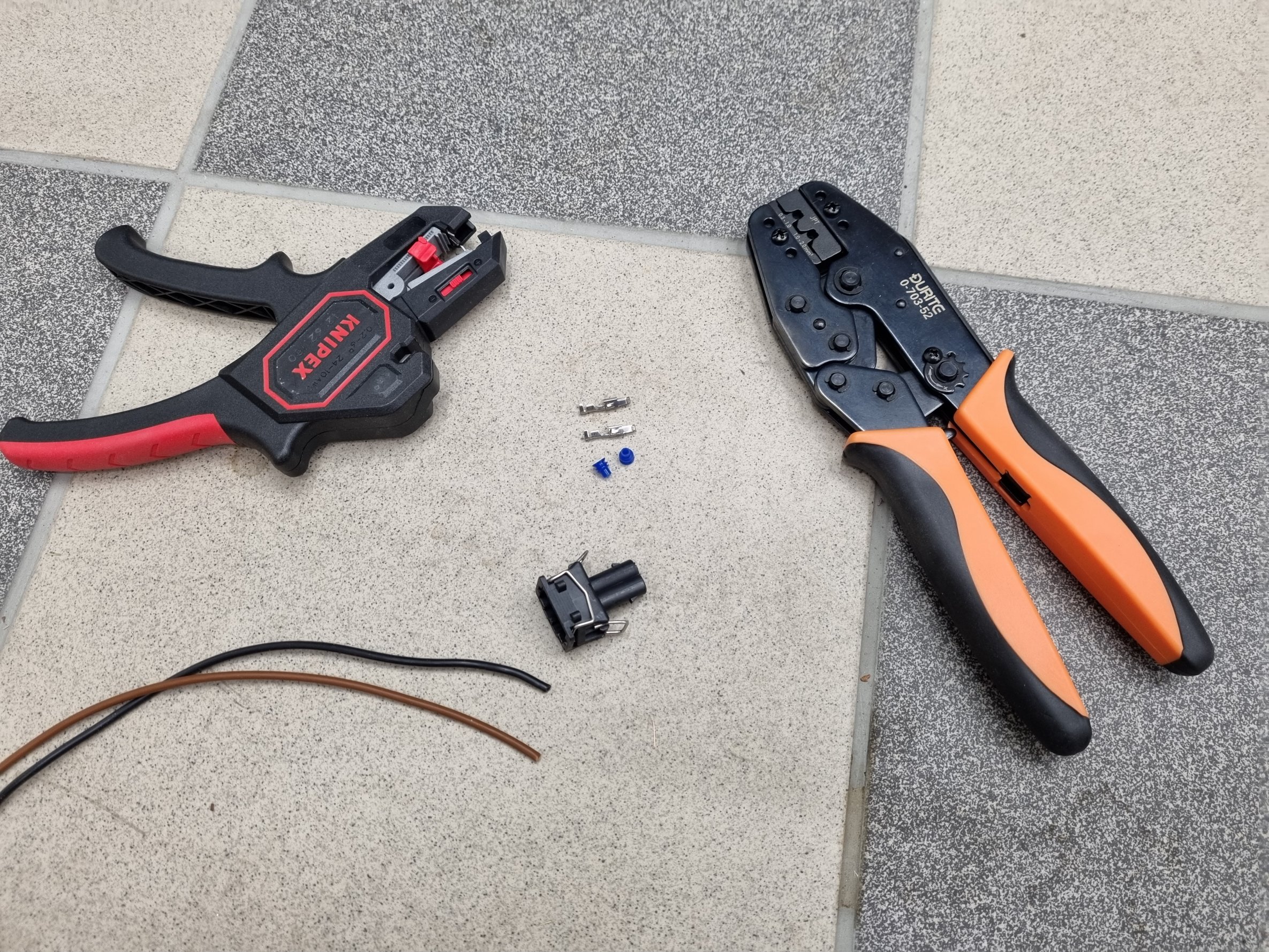 Den observante noterar att det är olika presstänger till dessa 2 kontakter, faktum är att man behöver minst 5 olika presstänger för att kunna pressa alla de olika kontakterna i elsystemet på en golf....bara tång-kostnaden blir jobbig :eek: