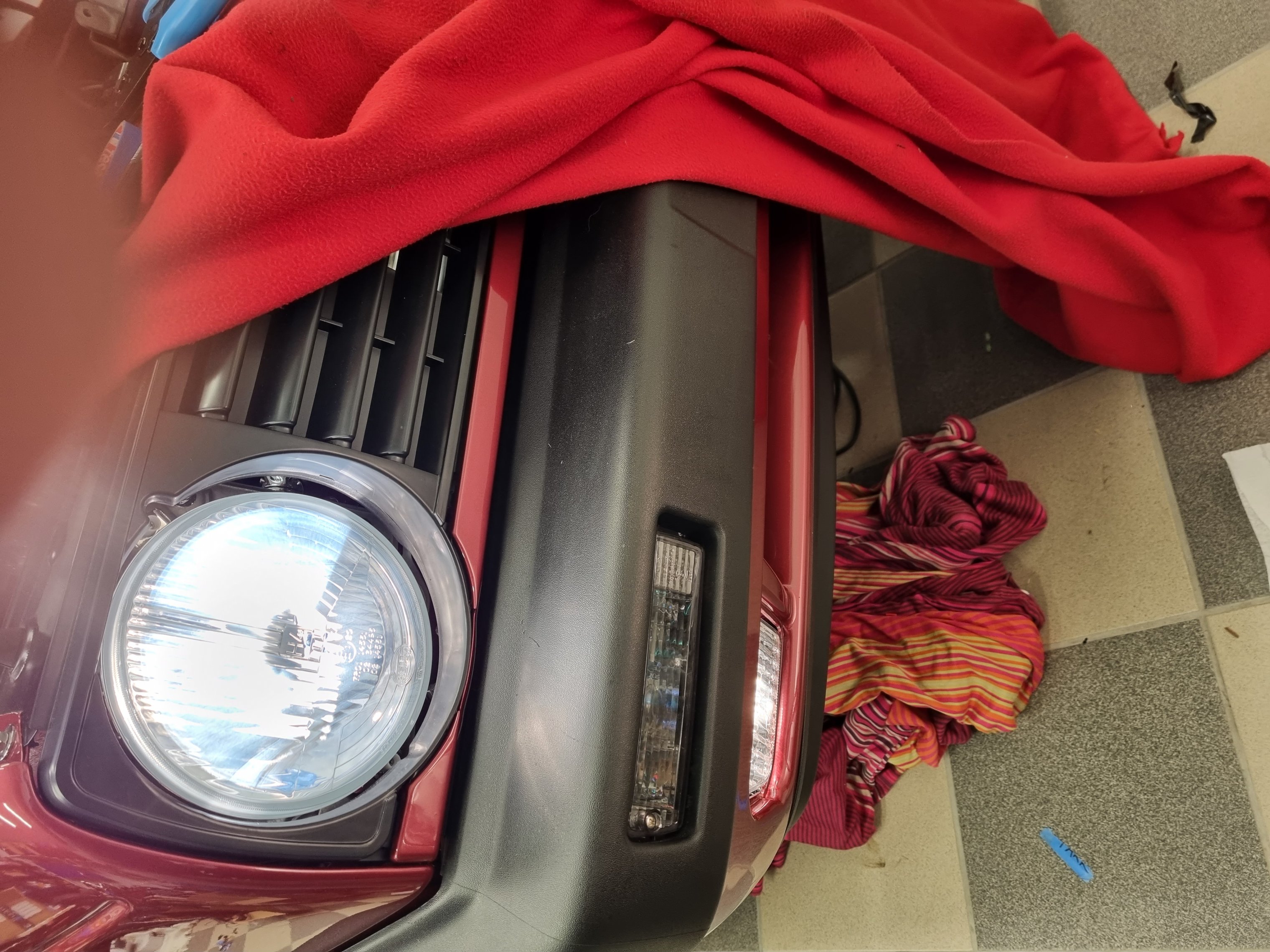 Sen skar jag upp org kabelmatta och tog bort de som inte behövs längre och drog upp den till dimljuset till huvudstrålkastaren. Sen skall alla ihop i en strumpa och in bilen.