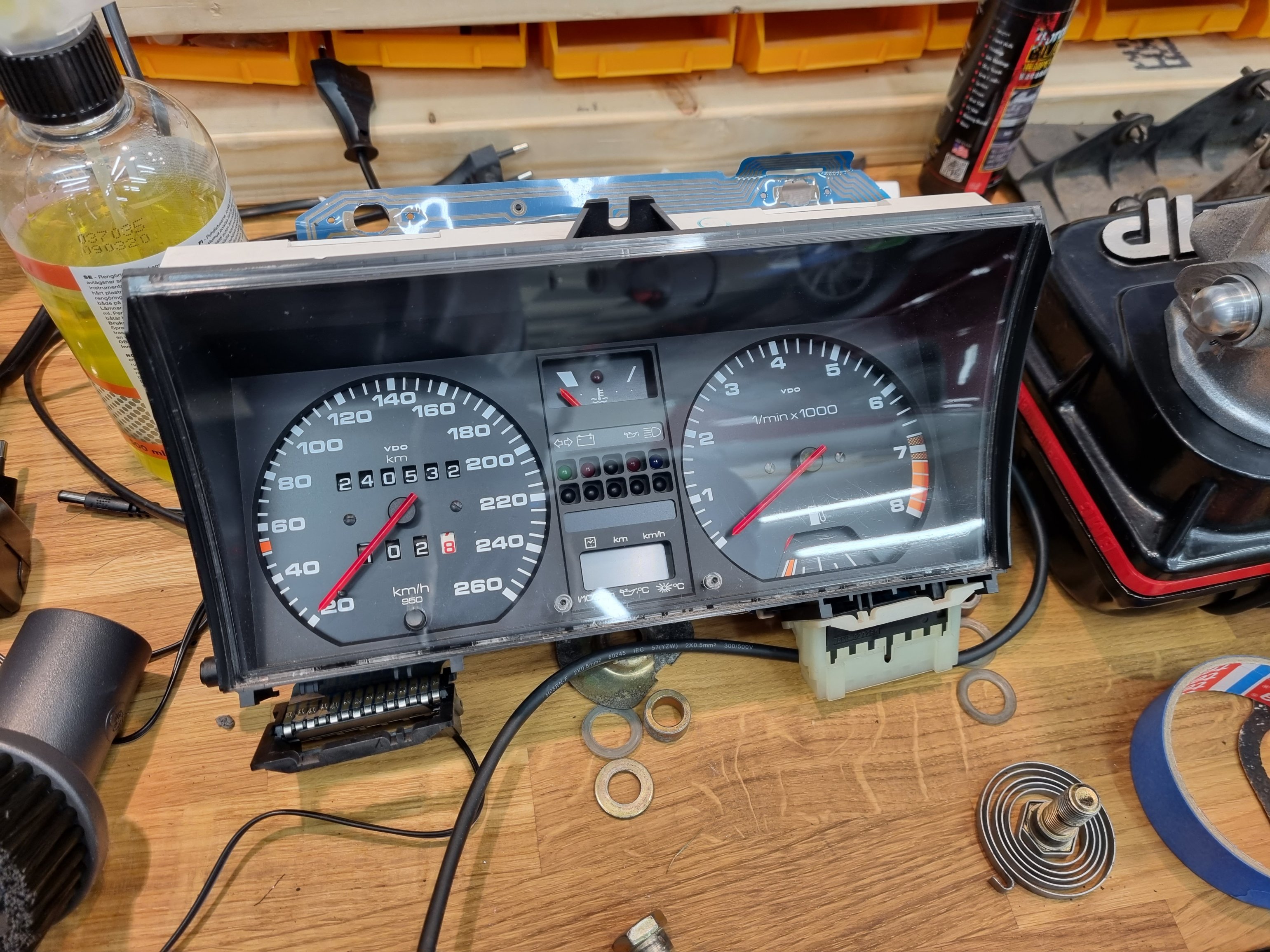 Så det åker ut, liksom en hel del annat som tillhör, tex en fyrkanals avgastempmätare, gammal lambda mätare etc.