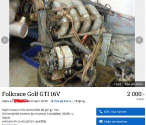 Vill ju helst inte lägga för mycket tid och pengar på den röda golfen nu när jag har andra projekt ;) Men vill samtidigt inte göra mig av med den röda heller efter allt slit. Den funkar ju och är besiktad förutom problemen med motor och låda. Sen så är det väl smidigt att ha ett fungerande 16v-paket att flytta till den blåa sen också om man skulle vilja besikta innan turbokonverteringen.