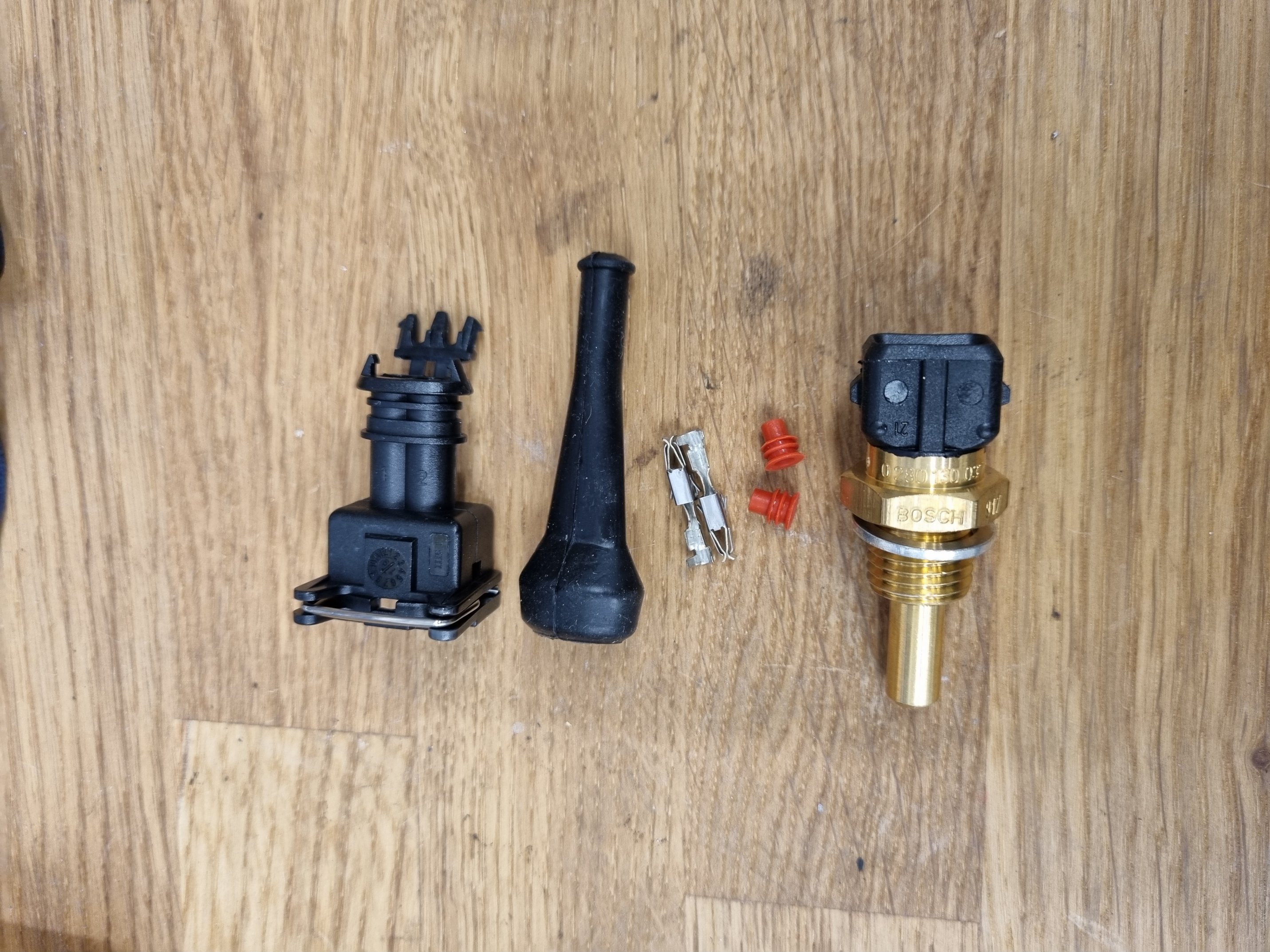 Först vattentempgivare till sprutet. Vattentempgivarna på VW:s "gamla" 16V motorer är bara M10x1 och väldigt grunda, typ 10mm. Nästan inga eftermarknadsgivare passar här.