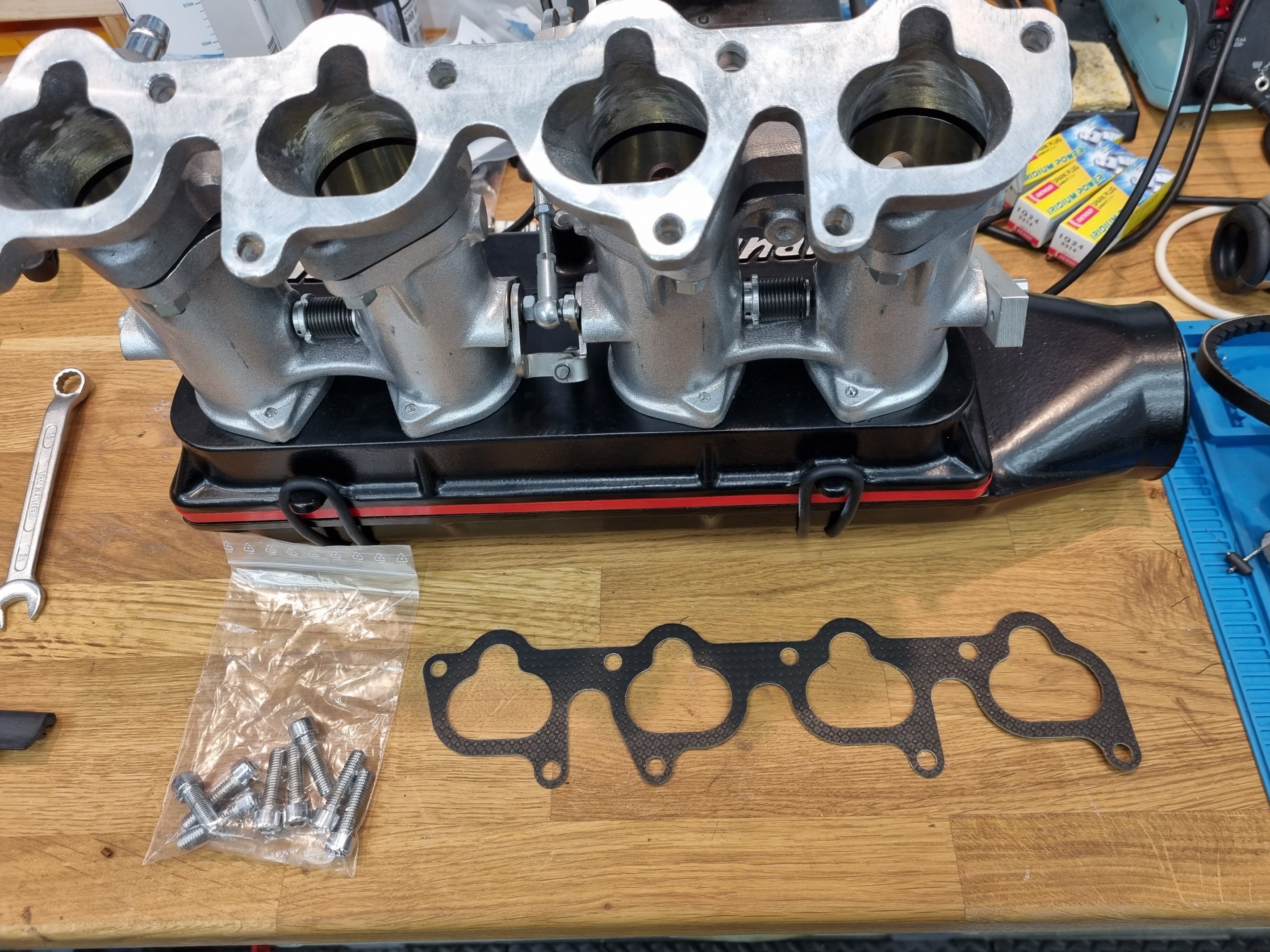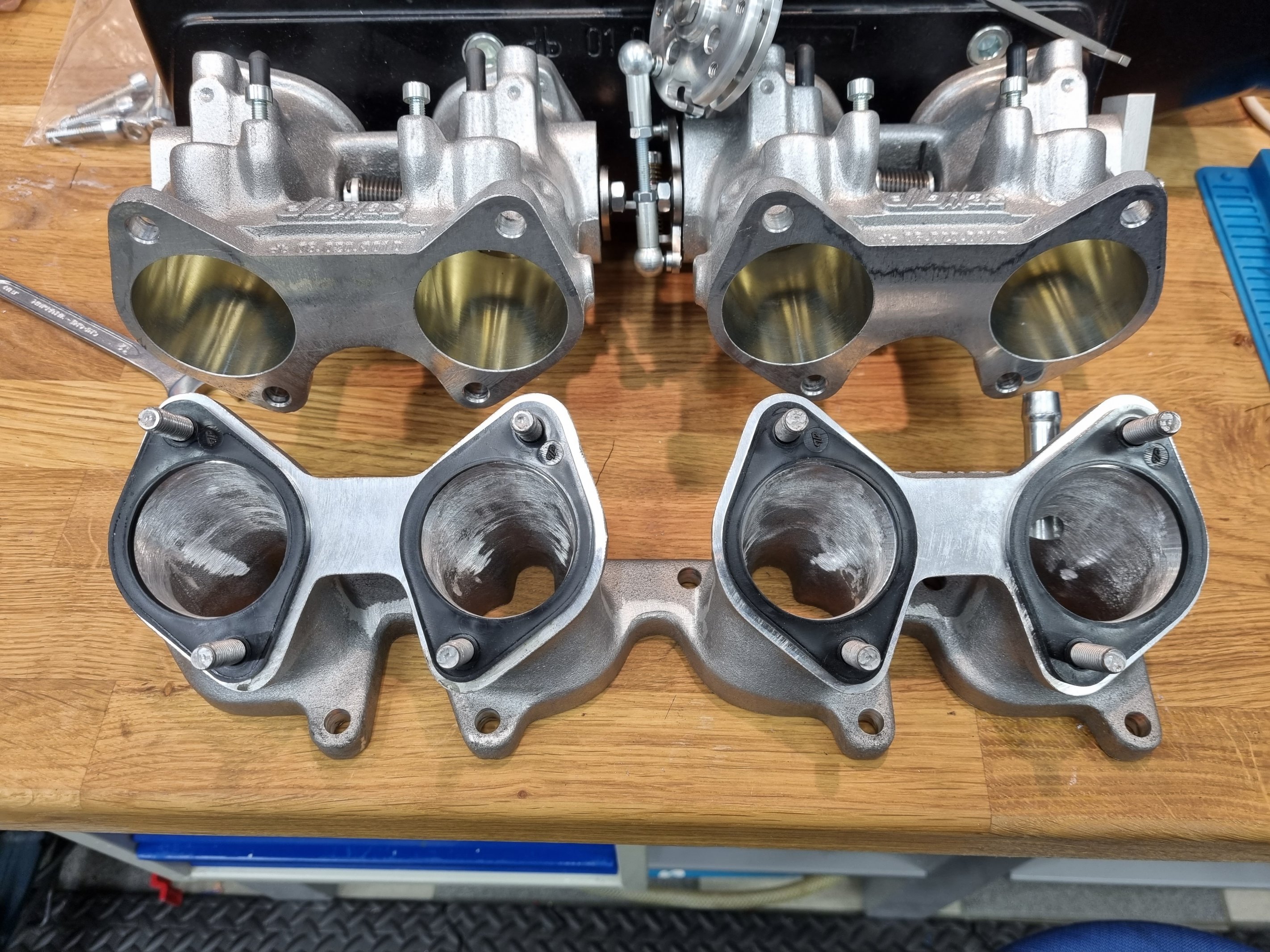 Resten av kittet är jag inte lika imponerad av. Det stora problemet på Mk1, 2, 3 när man bygger individuella spjällhus är ju platsen framåt, den finns inte. På alla org motorer så sitter ju antingen insuget på baksidan av motorn eller böjer sig över ventilkåpan bakåt.