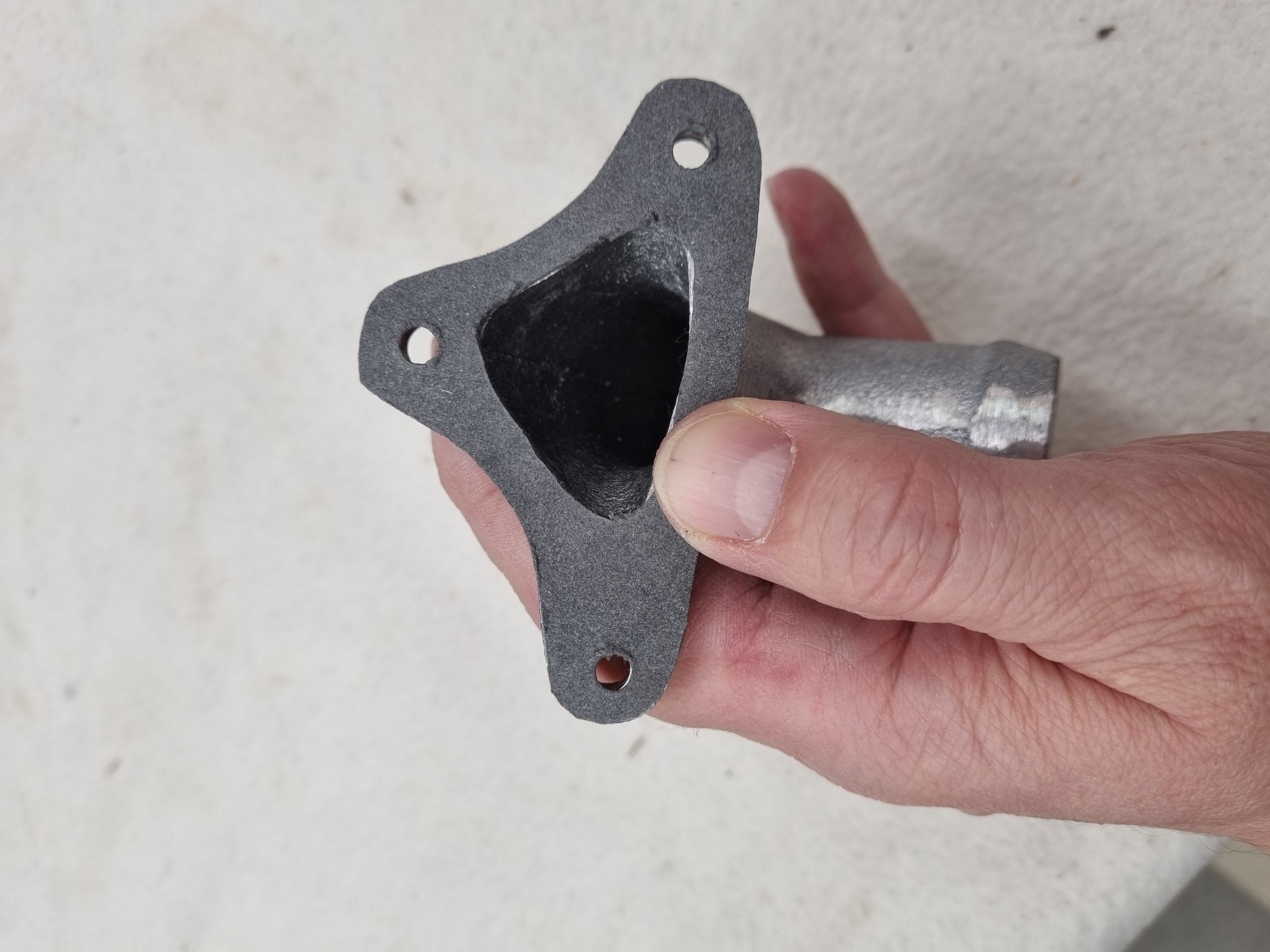 Packningen fastskruvad på insuget och överflödigt material markerat med blå spritpenna: