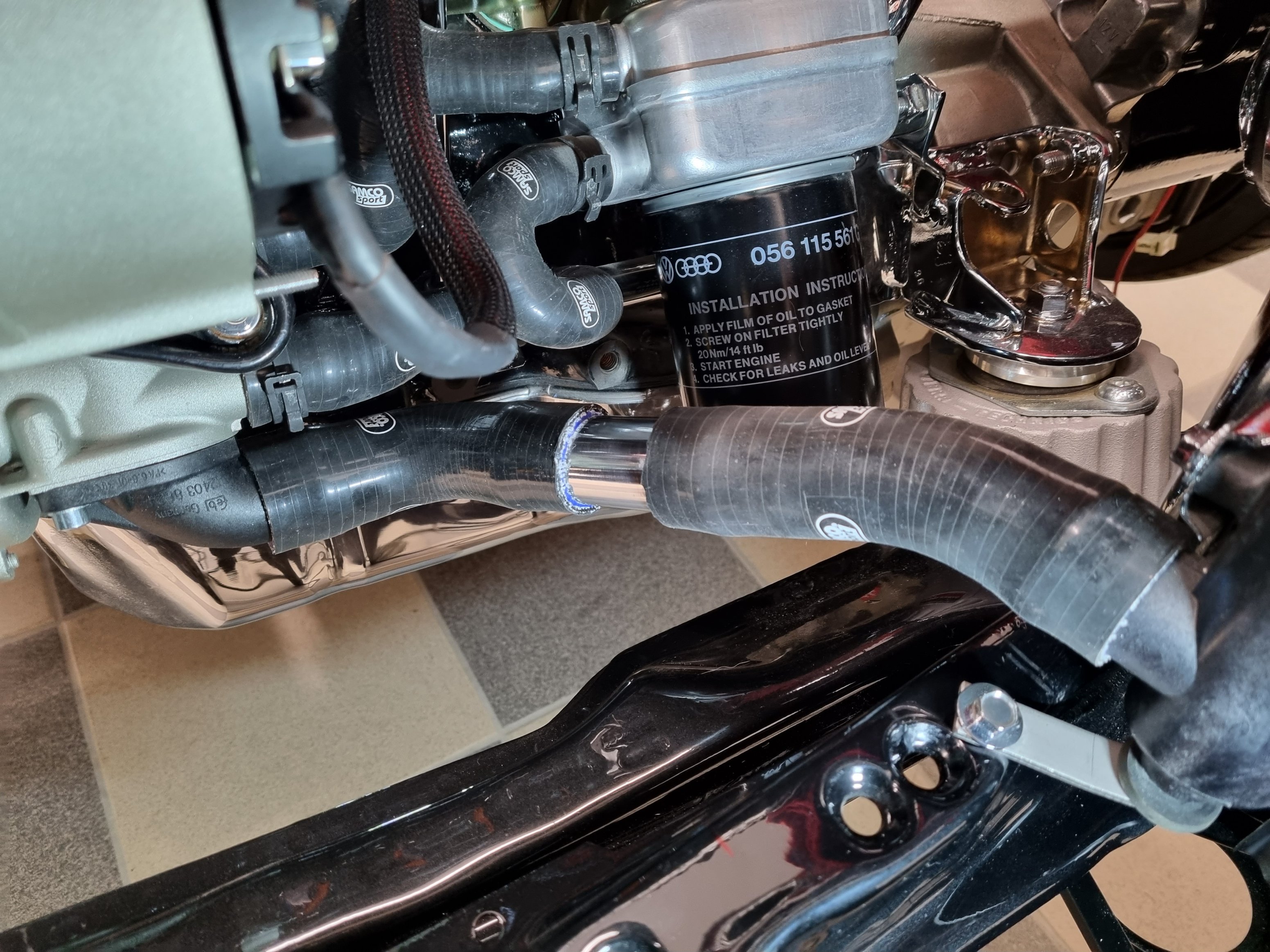 Håller med, snyggt jobbat. Nu har du ju löst problemet redan men jag vet att många skaffat lägre kylare för att kunna montera i original punkter - slangar. Nån som gör det riktigt snyggt är Fresh Reflections i England - svestar nya alukylare efter spec och allt passar i original fäste. Dock har han dragit ner lite på produktionen senaste tiden men värt att kolla upp.