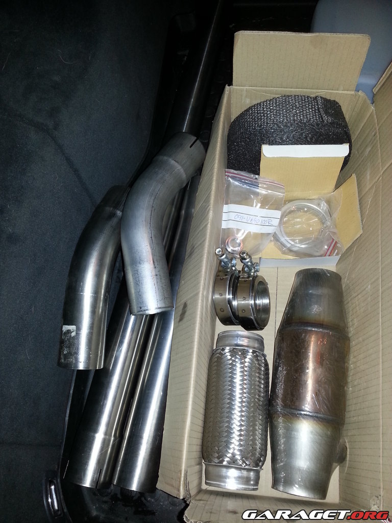 Nya delar till downpipe ;) V-bands klämmor, 100-cells racekat, flexstrumpa och såklart rostfritt alltihop! Ska införskaffa lite mer matrial så ska det blir rostfritt 2,5" hela vägen under bilen...