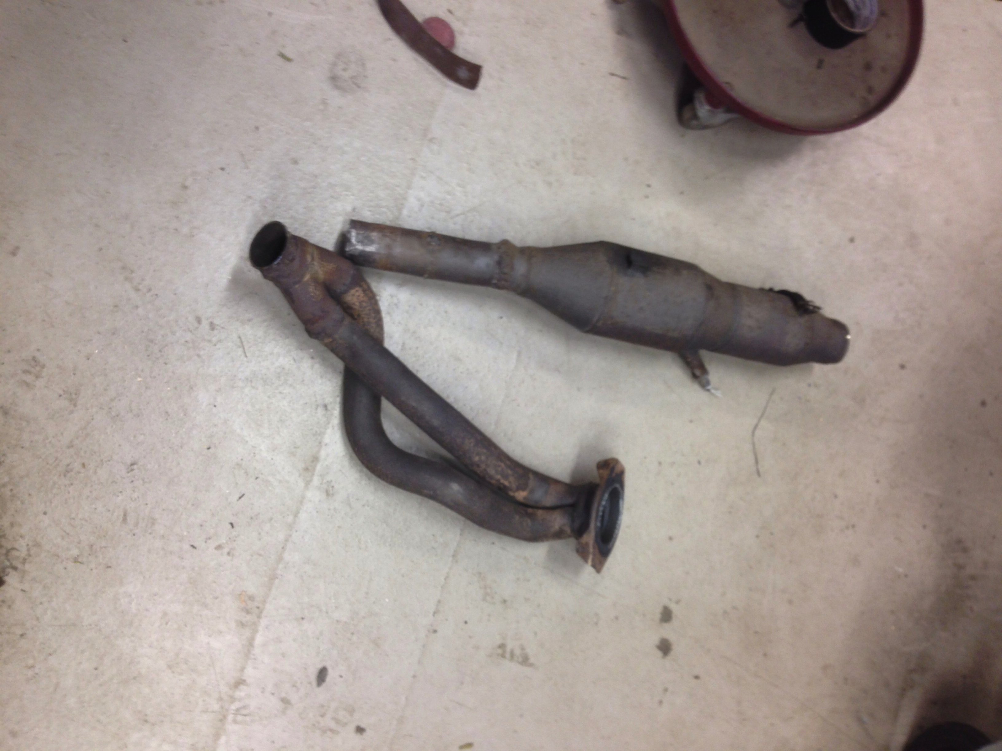 Hej , idag så jobbade jag lite med bilen igen, hade bokat en ny tid för ombesikta idag kl 13:00 så tänkte byta lamdansonden och små pilla lite & hoppas på det bästa. Började plocka ner systemet framtill, satt fast med två plåtclips & i bak kant satt en vanlig avgasklämma, bytte sonden och tänkte vara lite extra duktigt & byta den packningen som är konad. Den var inte alls rolig att byta. Hade jag vetat hur svårt det var hade jag nog ärligt åkt in och spelat dum :)