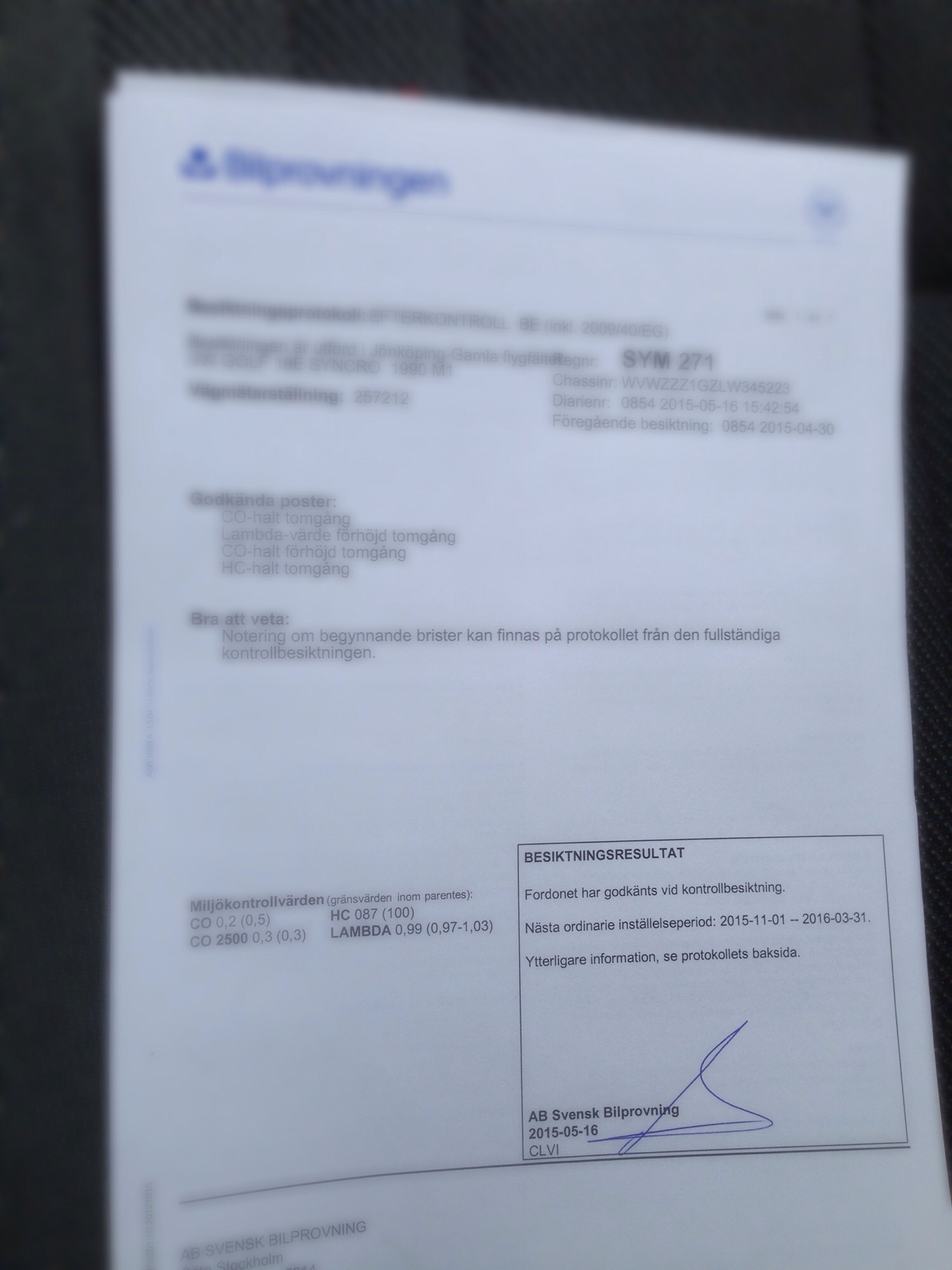 sen när det var klart & varmkört så var klockan 14:00 så gick inte igenom, hann dock omboka besiktningen till nästa helg istället, får mina sommarhjul då med så blir perfekt!