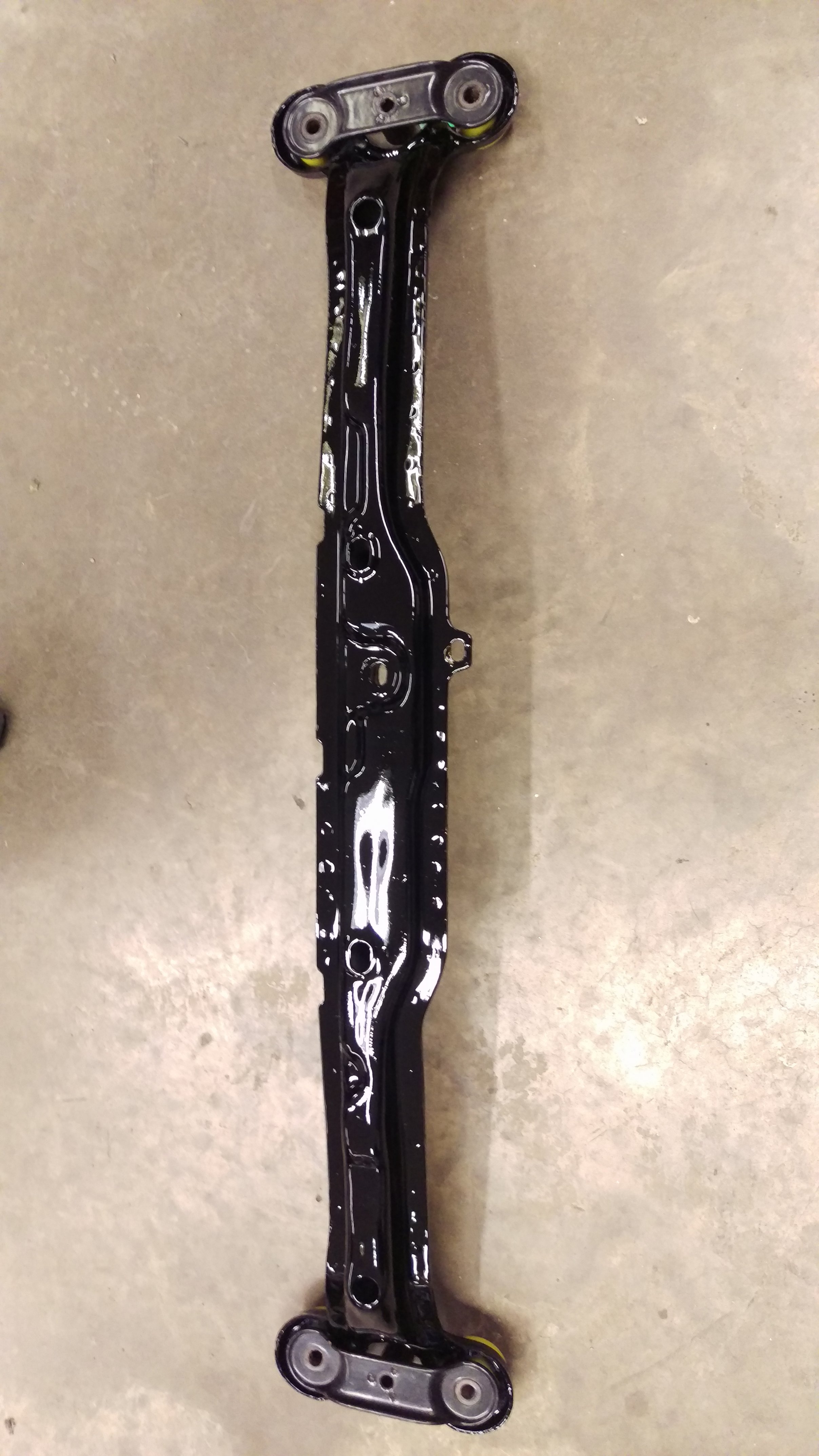 Nu är frontbalkarna klara, blästrade, syradoppade, grundlackade med 2K eopxy och topplackade med 2K billack. Pressade även i superflex bussningarna och monterade fästena till stötfångaren: