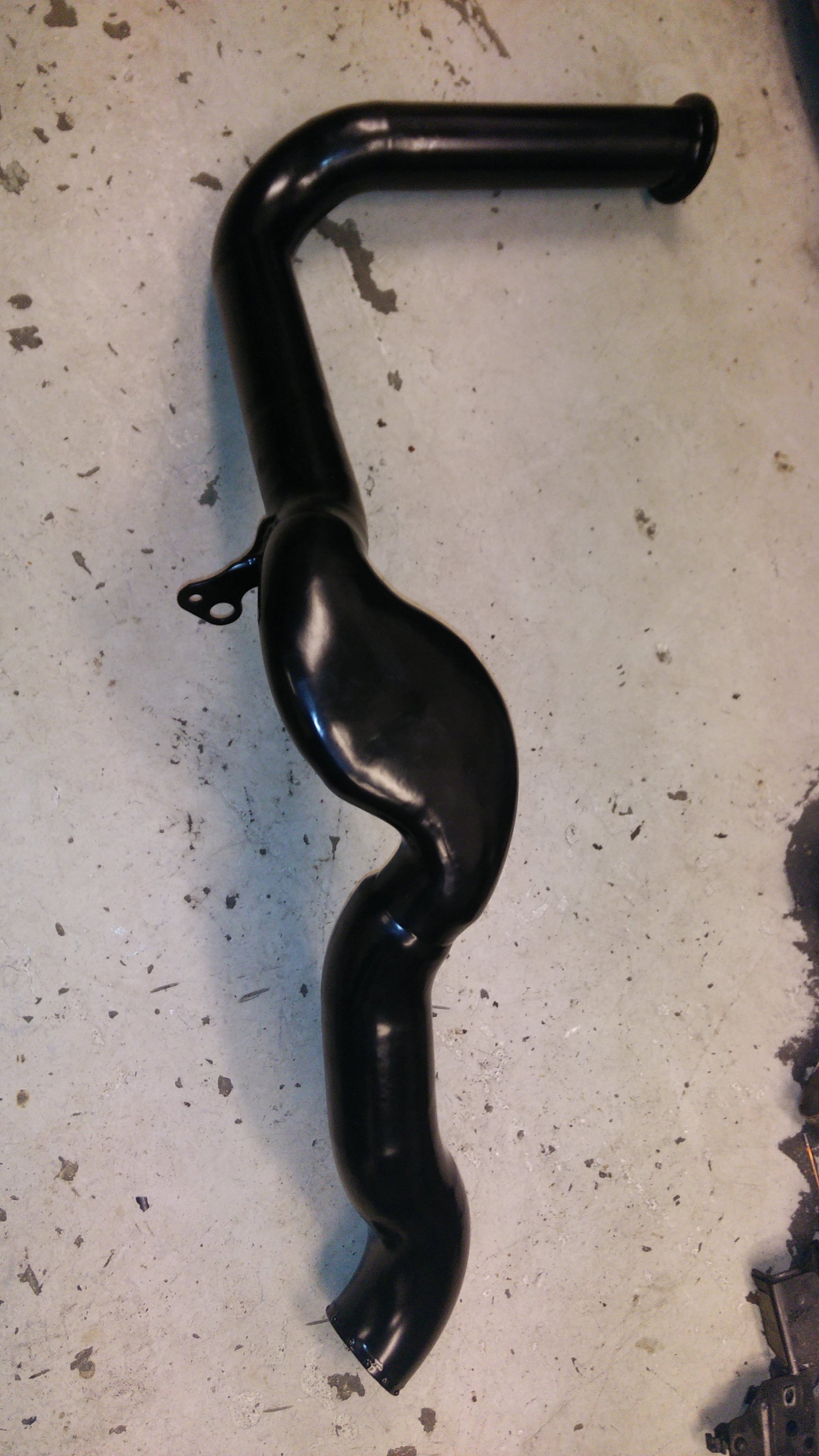 jooo, jag höll på å kapade upp sånna mk4 pannkaksrör, för att knycka slangstopparna i ändarna på dom, och insåg att tryckröret behövde svängas runt sopparegulatorn, att det låg ganska högt och att kylarslangar mm behövde en passage därunder.. så då vinklades två gavlar ihop med detta resultat.. ;)