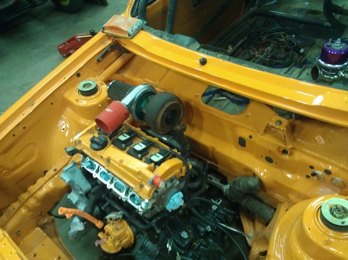 Börjat montera på lite grejer för å se hur det blir. insuget kom lite högt men tror det ska gå om jag får upp motorn nån cm i bakkant. beställt en hög med böjar från kl så nästa vecka ska jag börja med genröret