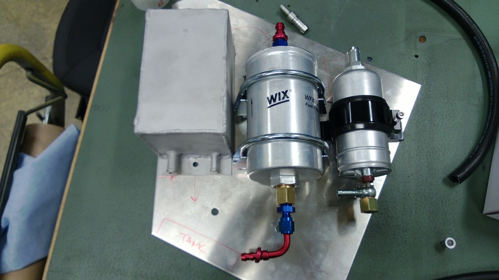 Bilen står där jag lämnade den, monterade bränsleaccumulatorn lite provisoriskt förra veckan.