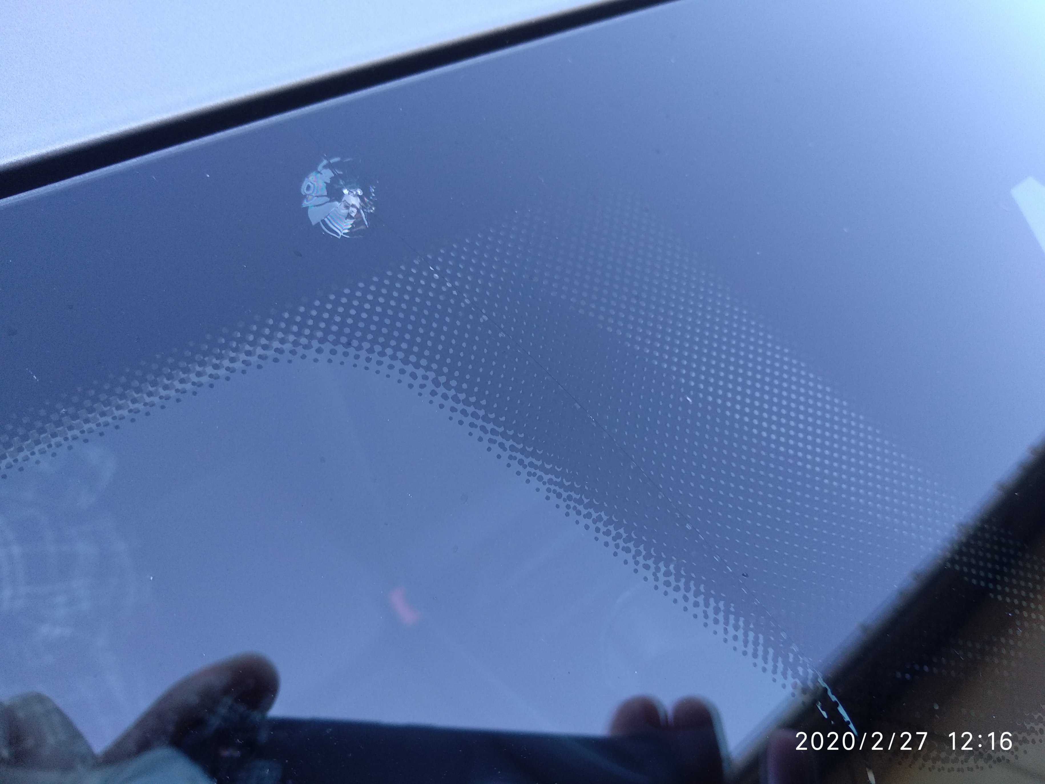 Nickade en sten med framrutan idag :( Blen en ca 10 lång spricka som knappt syns på bilden.