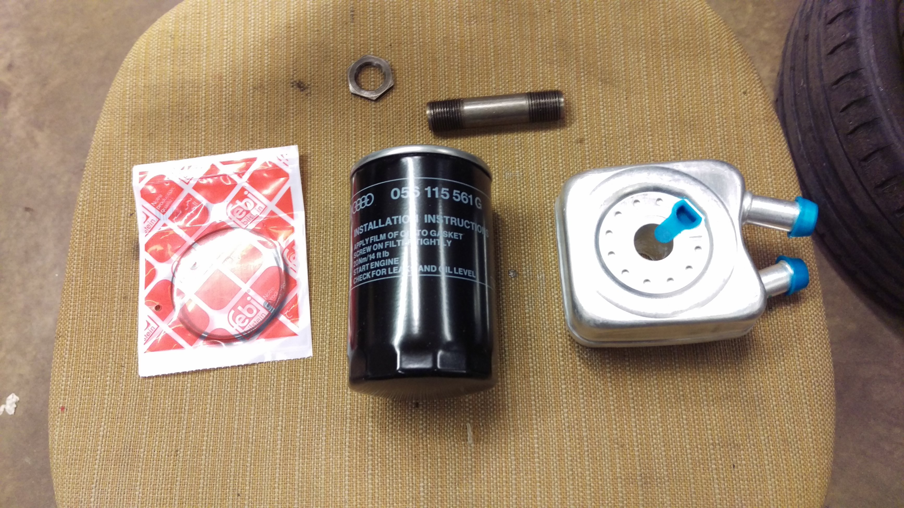 Hade köpt det som krävdes för att montera oljefilter. Nytt oljekyl, nytt filter och ny packning:
