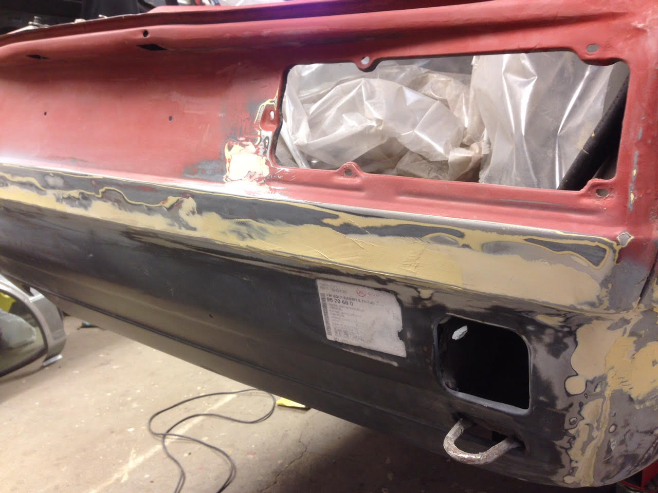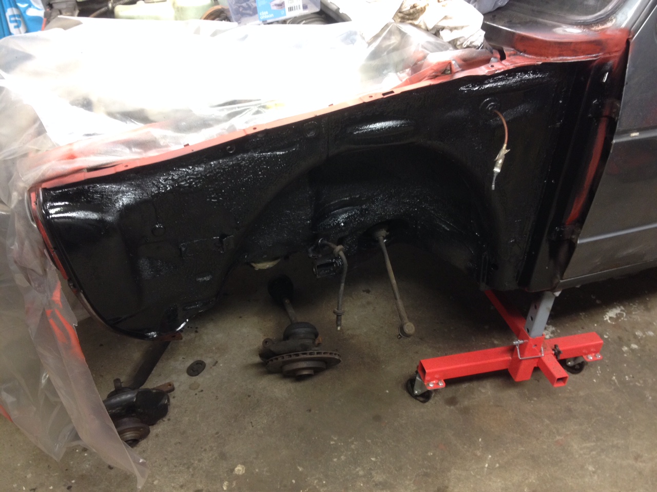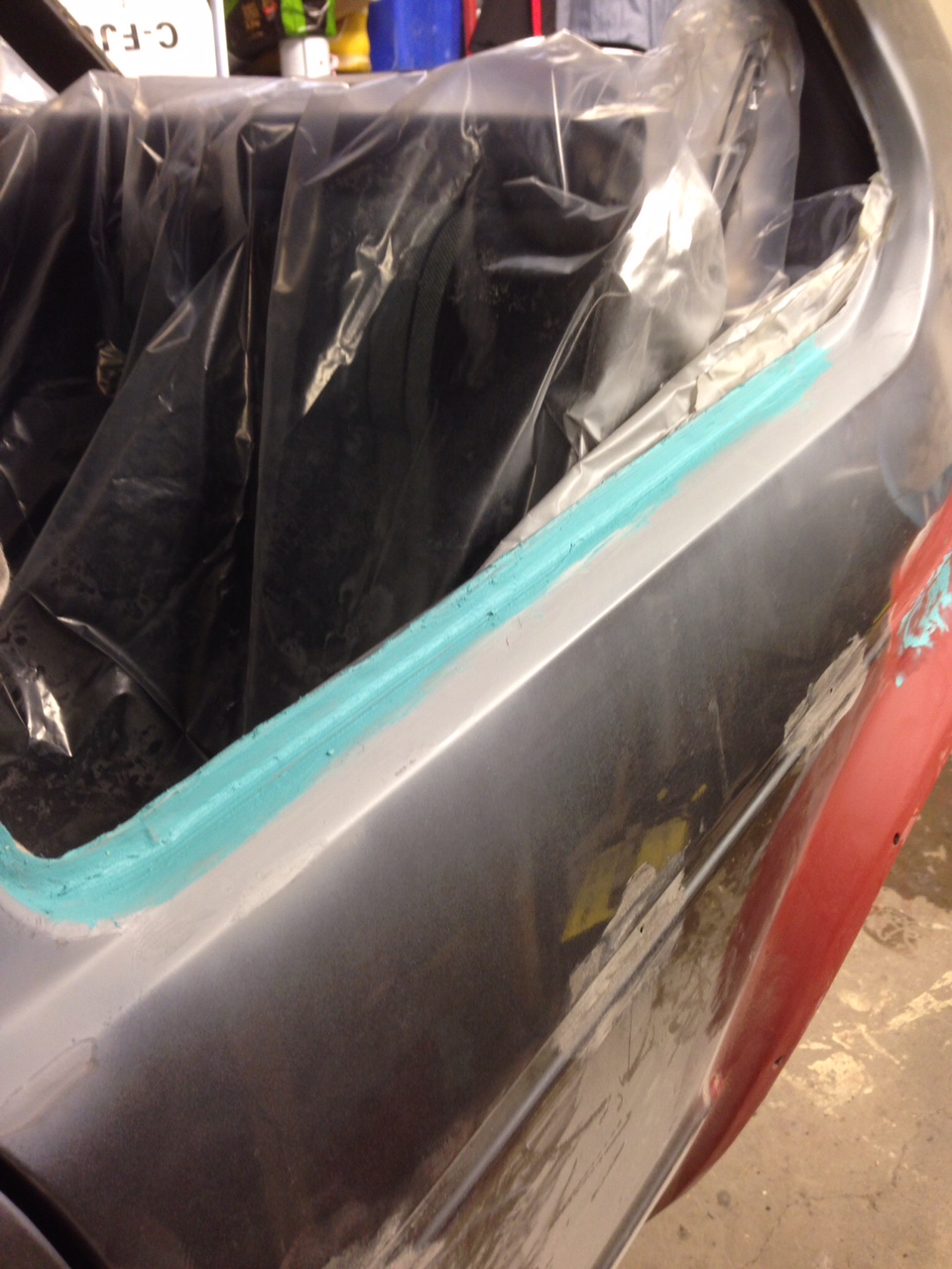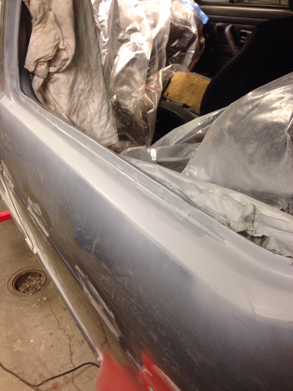 Det sitter en ganska tjock grundfärg/primer i botten så dammet i garaget har varit extremt påtagligt. Och nu när det är -20 grader ute så vädrar man kanske inte så länge då värmen försvinner ganska snabbt.