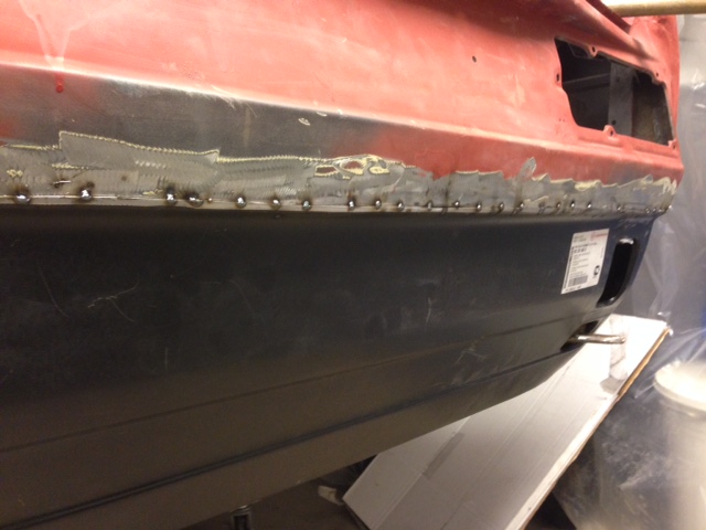 Fortsatte med nedre bakplåten, spenderade mycket tid på inpassningen av flera anledningar. Dels för att plåten som kommer från Klokkerholm inte riktigt var 100% passform då flikarna på sidorna var lite för långa, och dels för att urkapningen av den gamla plåten fick justeras och anpassas lite vartefter.