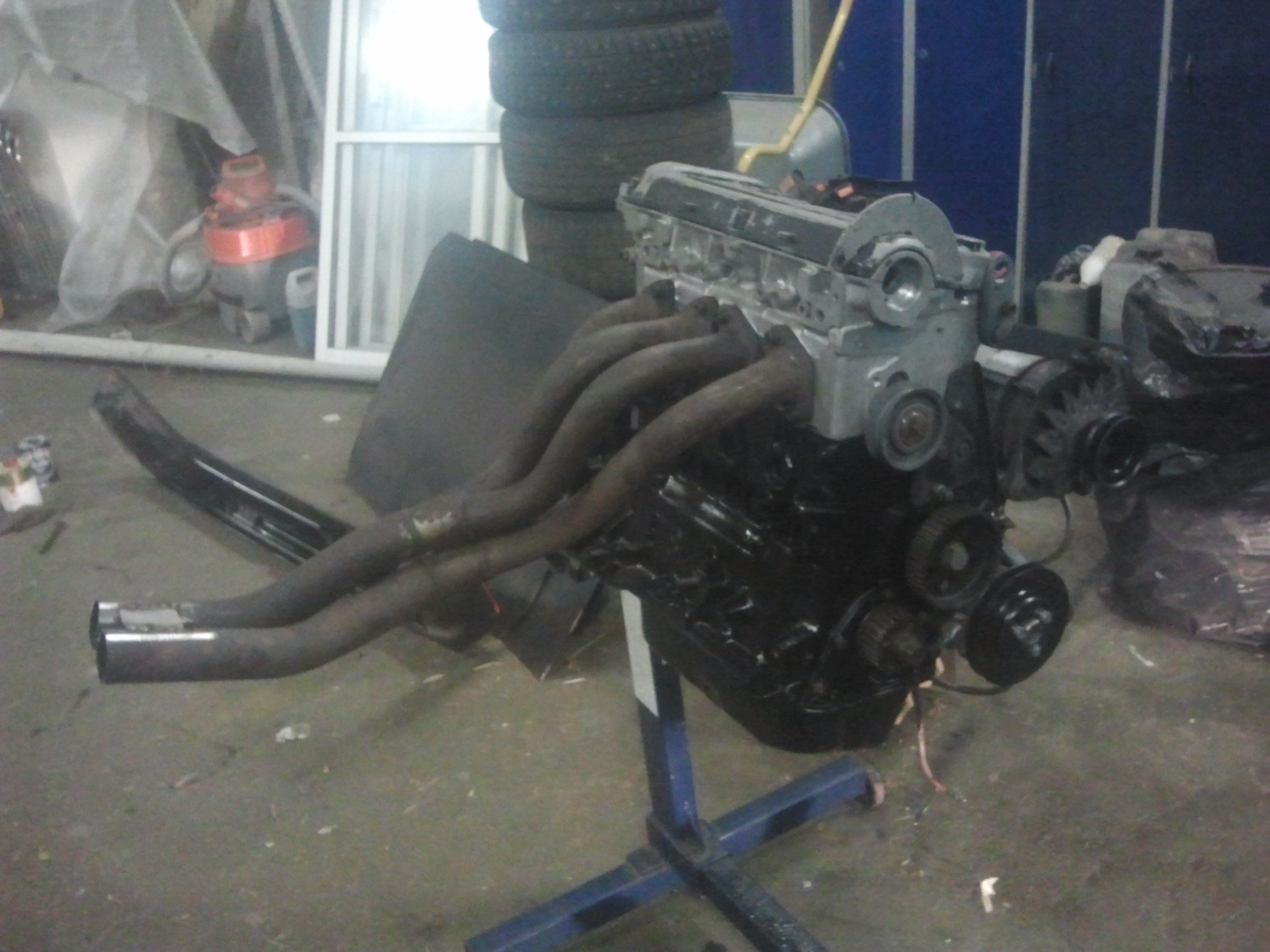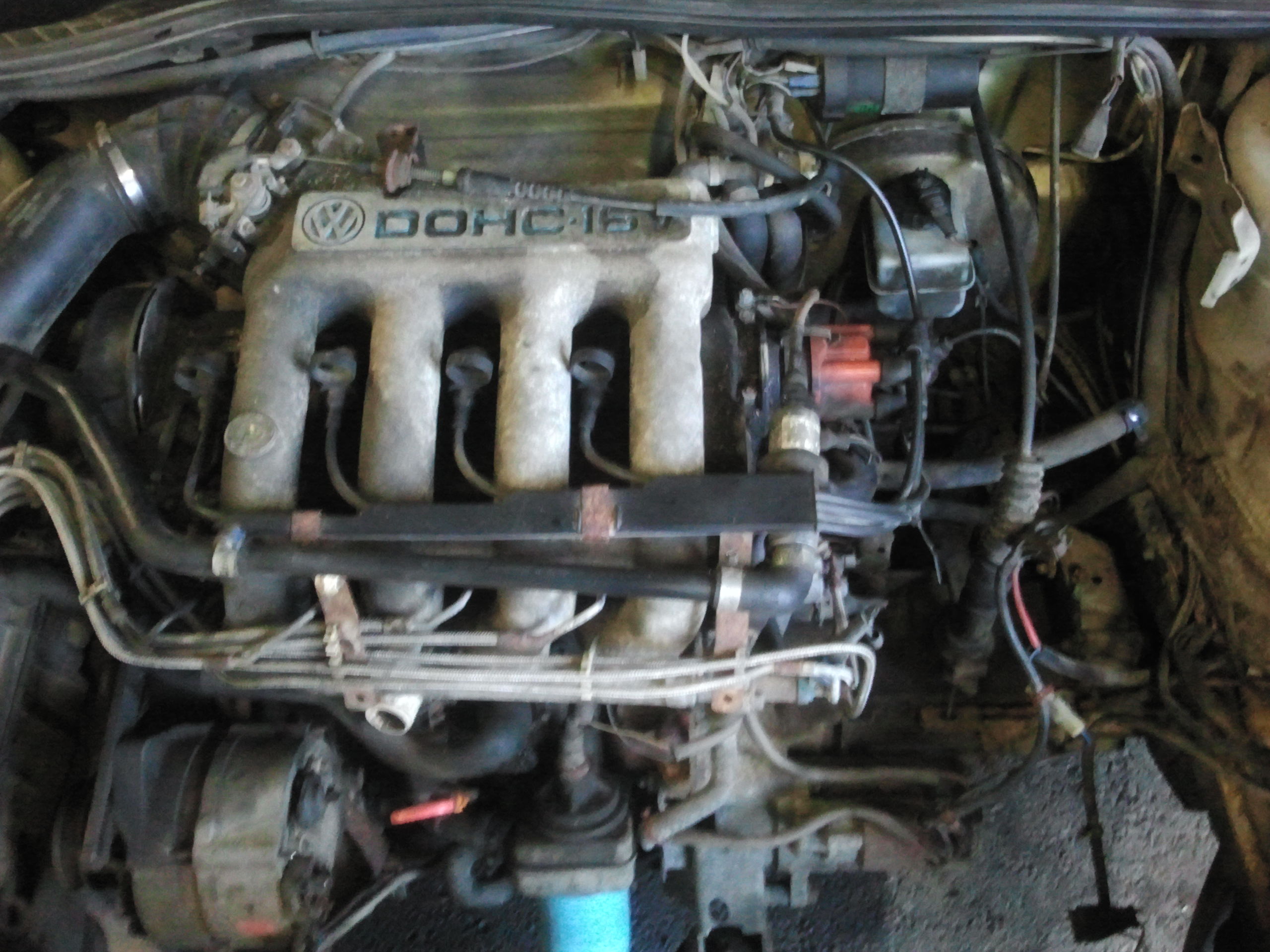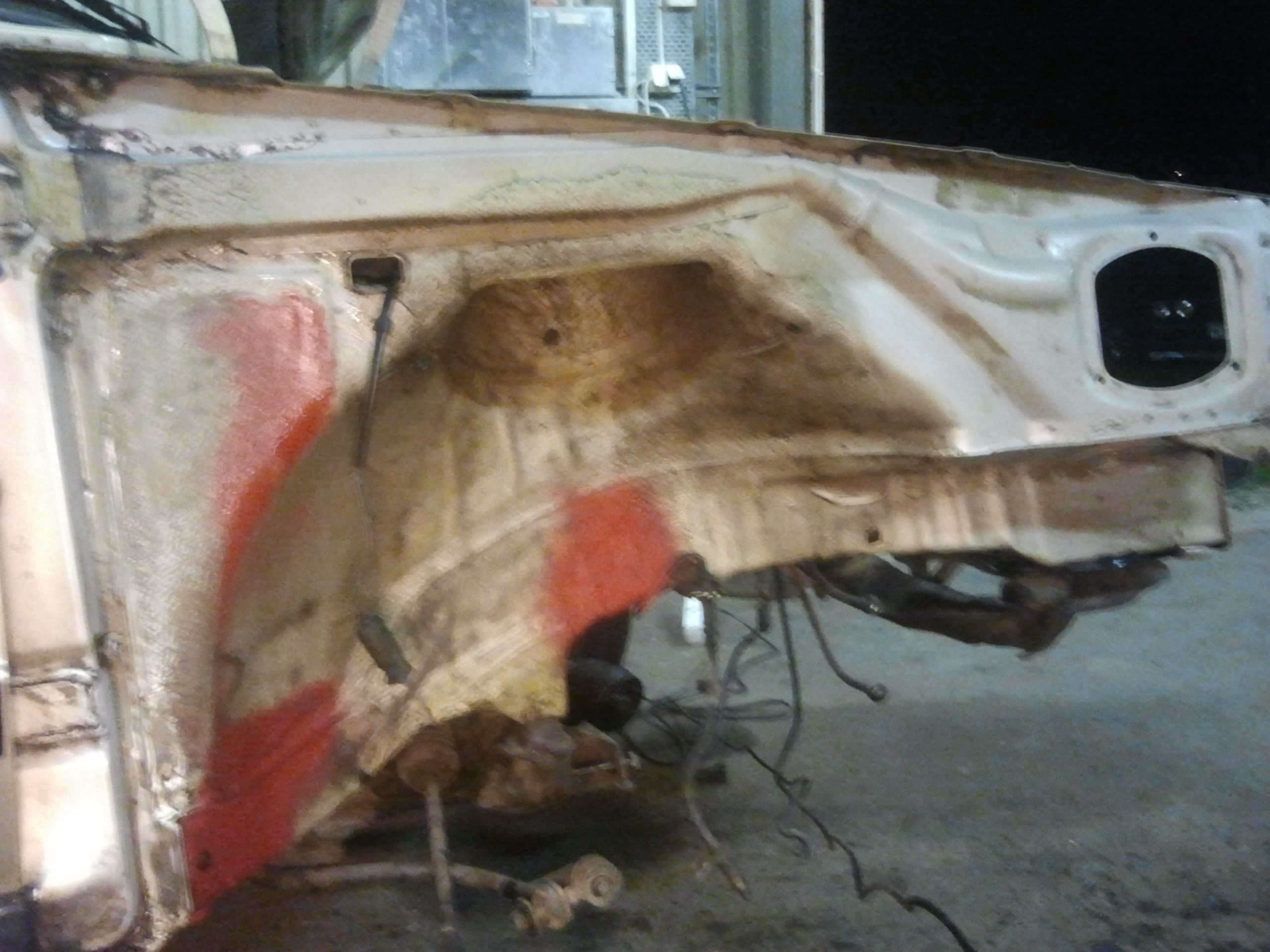 Började med att ta bort allt runt motorn för att kunna lyfta ur den, inte kul när ventilkåpspackningen har spottat olja och bilen stått i en lada i 10 år. Efter att motorn var ur gick jag på hjulhusen fram och letade rost. Hittade nästan inget alls till min stora förvåning, bara att rostskydda och lacka igen.
