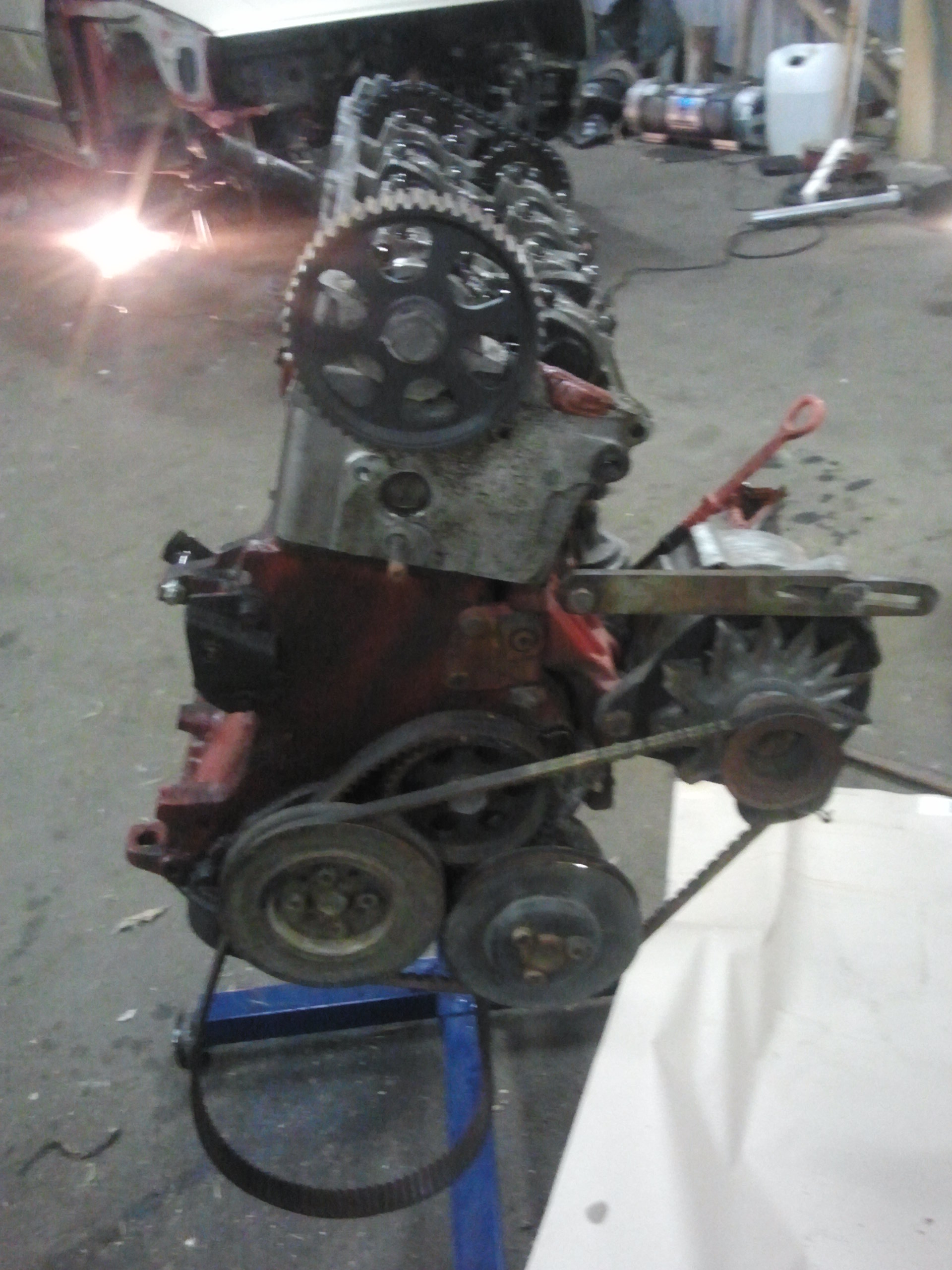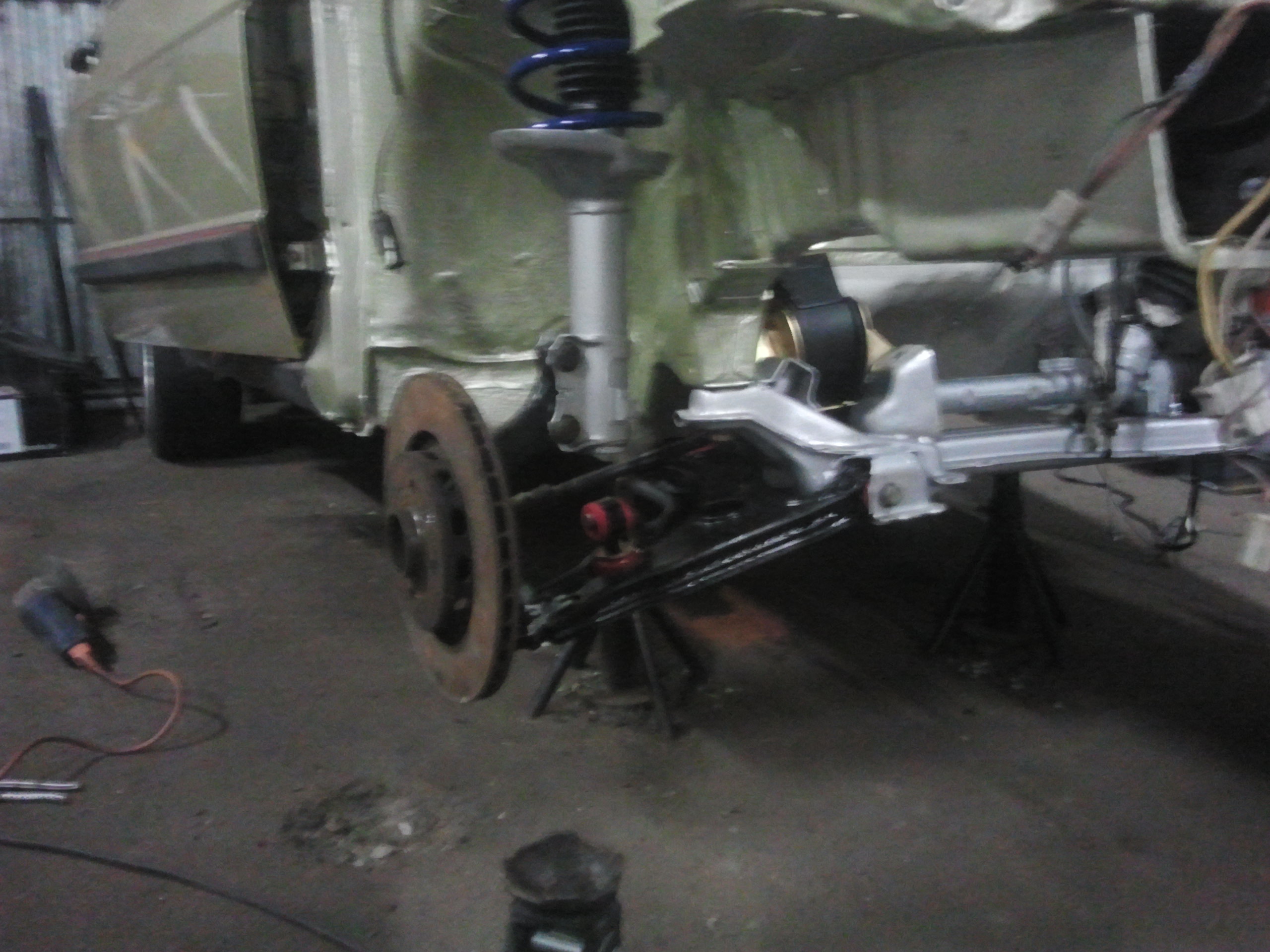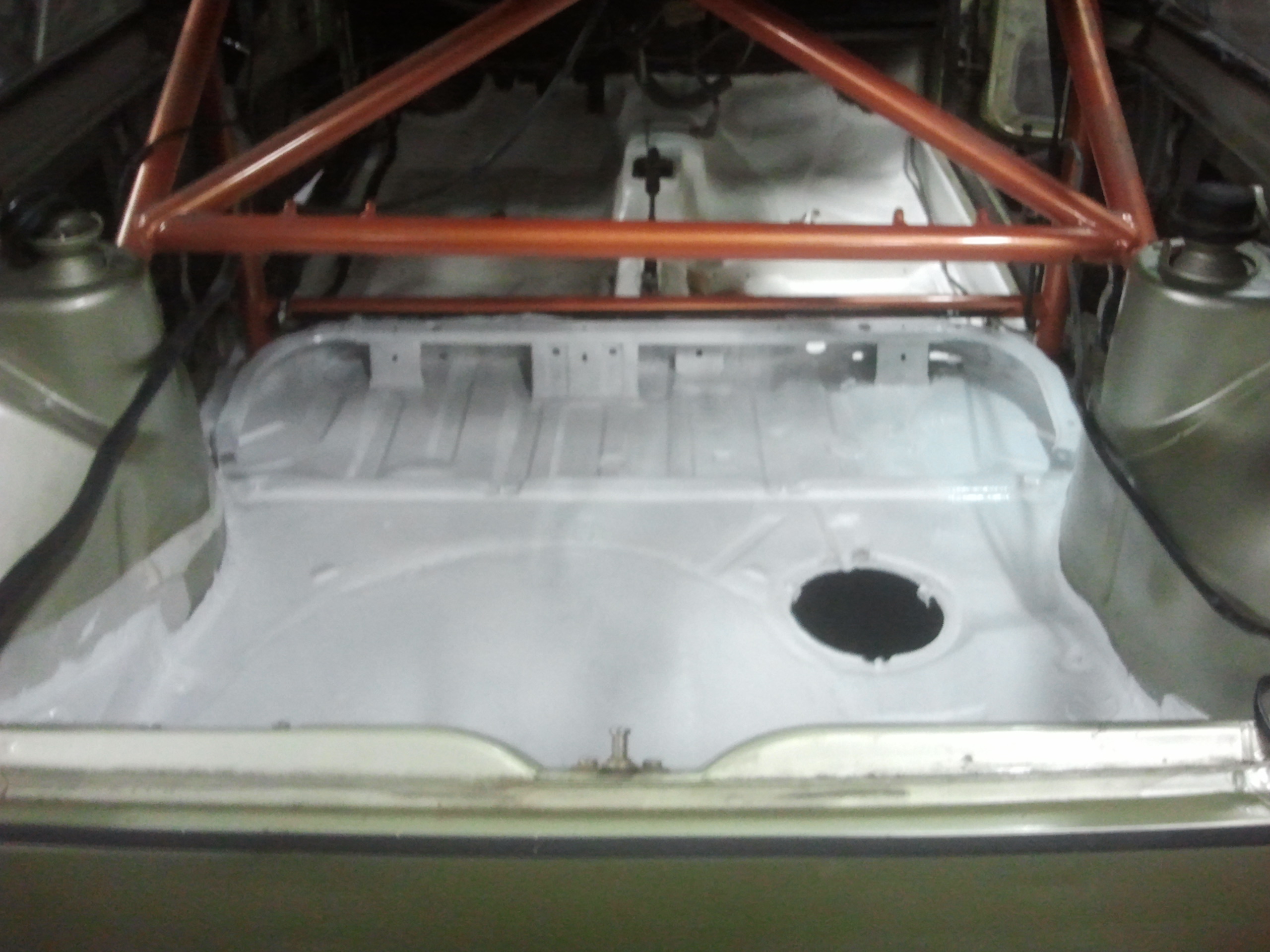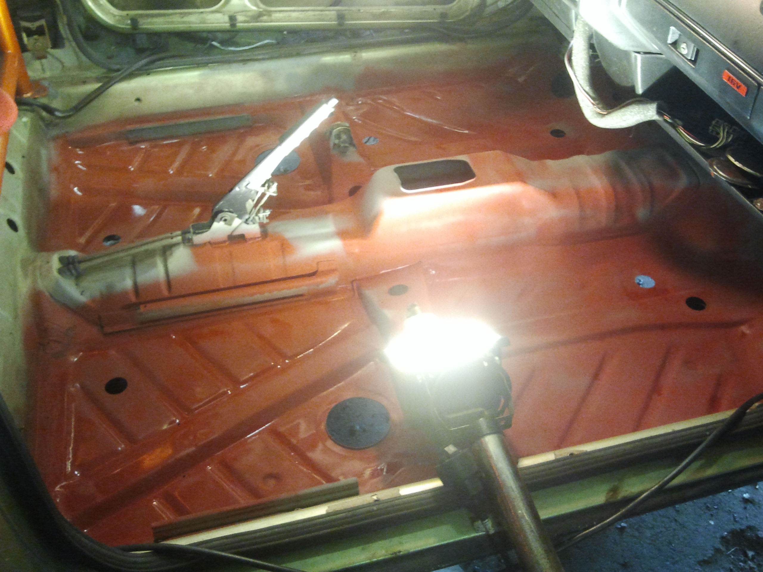 Började med att ta bort allt runt motorn för att kunna lyfta ur den, inte kul när ventilkåpspackningen har spottat olja och bilen stått i en lada i 10 år. Efter att motorn var ur gick jag på hjulhusen fram och letade rost. Hittade nästan inget alls till min stora förvåning, bara att rostskydda och lacka igen.