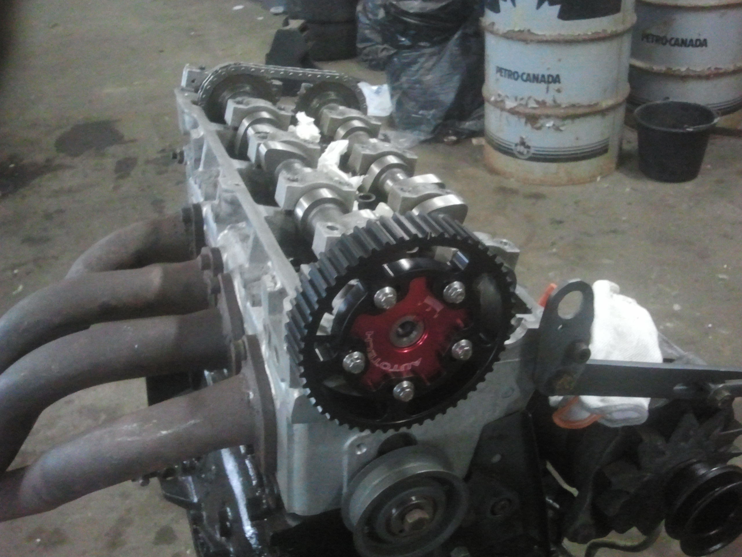 När det gäller motorn tänker jag börja köra med orginal block, sprut, vev, kolv och stakar. Toppen är portad, mira frästa säten, sleeves och inslipade ventiler av Erland Cox som också ska ha ett stort tack för all vägledning! Erland lättade också svänghjulet. Veven samt kopplingspaketet är balanserat och blocket nyhonat. Alla lager i motorn är bytade inklusive mellanaxellagerna. Har 4-2 extraktor för bättre bottenvrid samt borrad luftburk med kn insatsfilter.