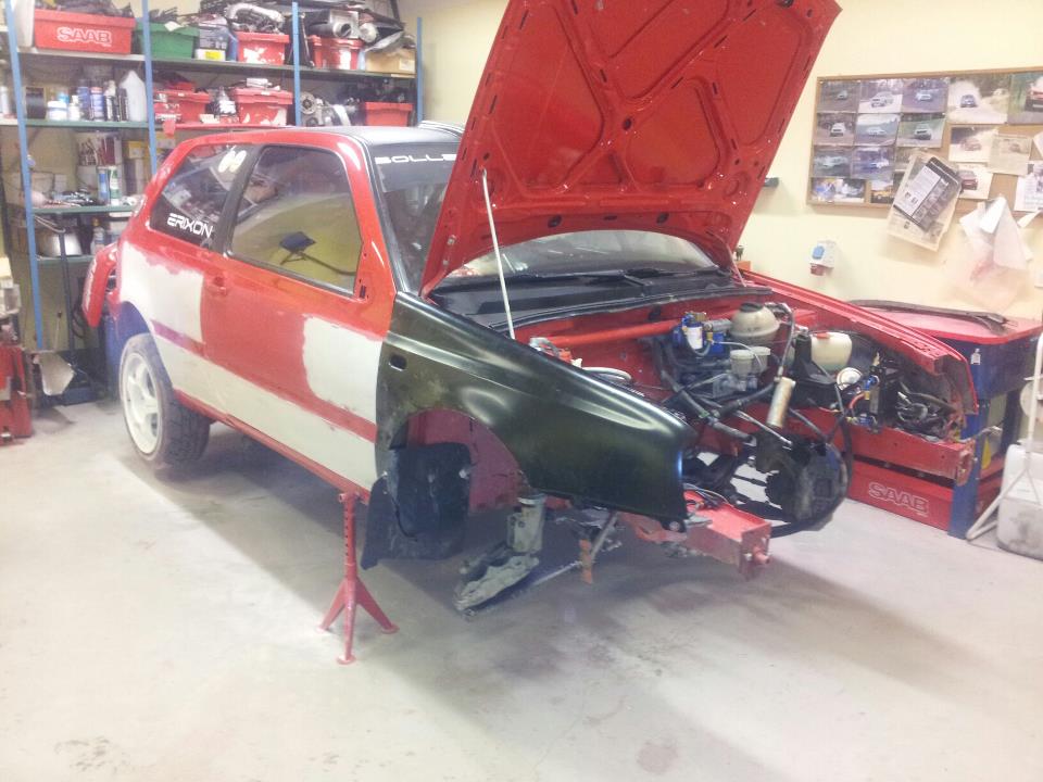 Karossen påbörjas när allt annat är klart. Tar antagligen fram och bakvagn från Gti:n så får vi 5-bultat