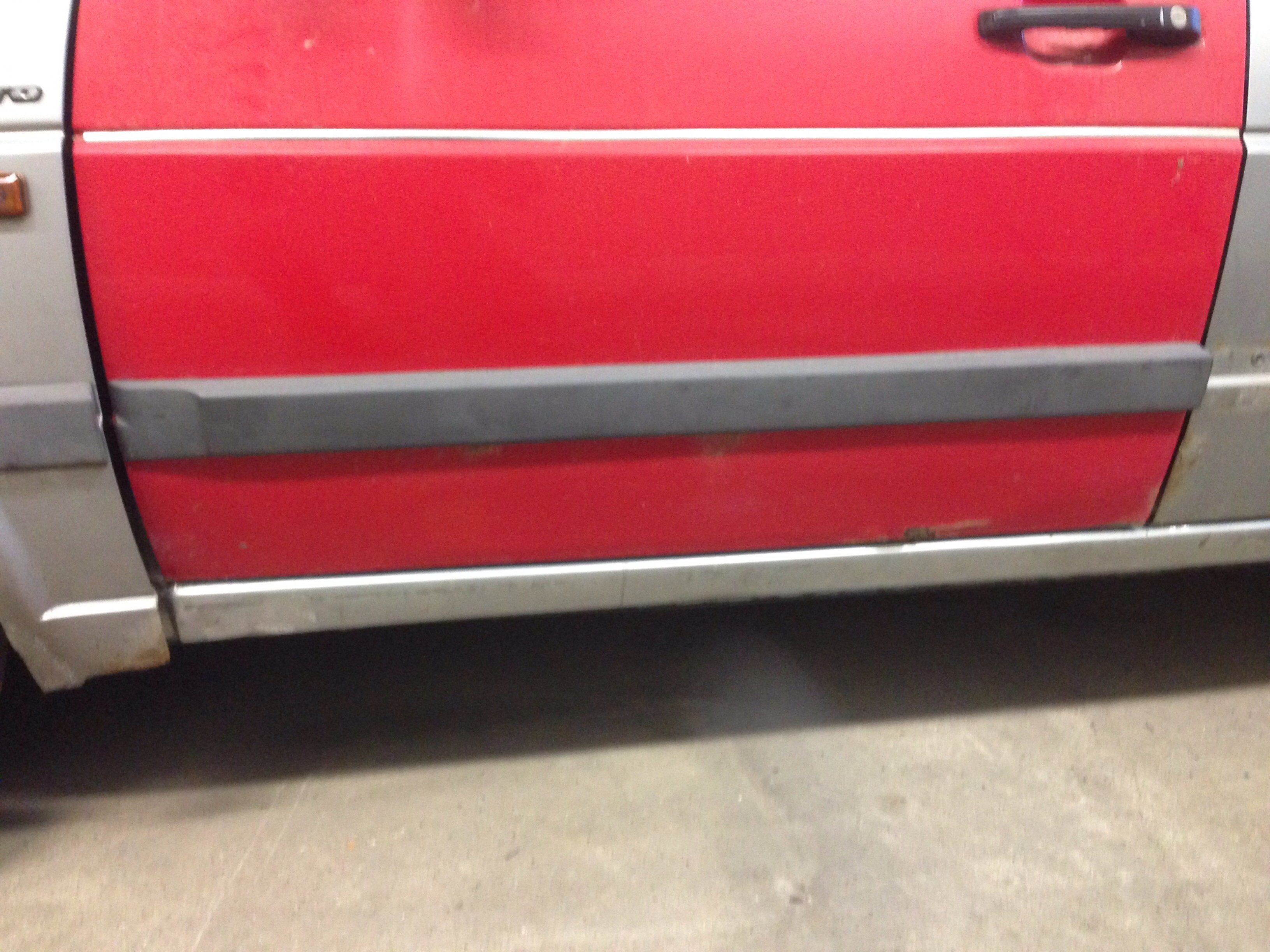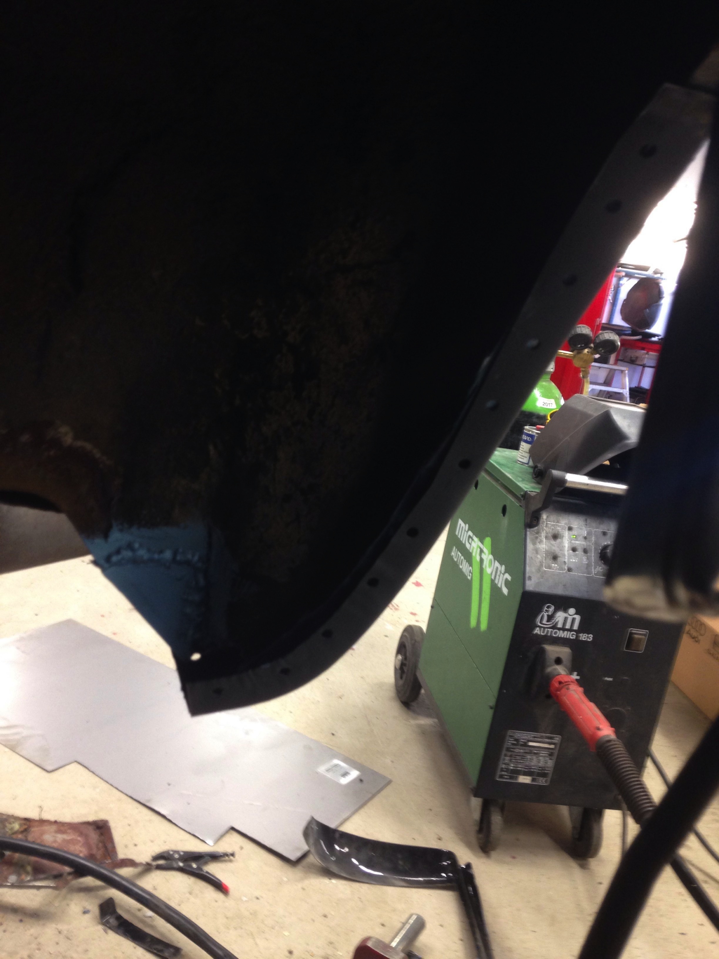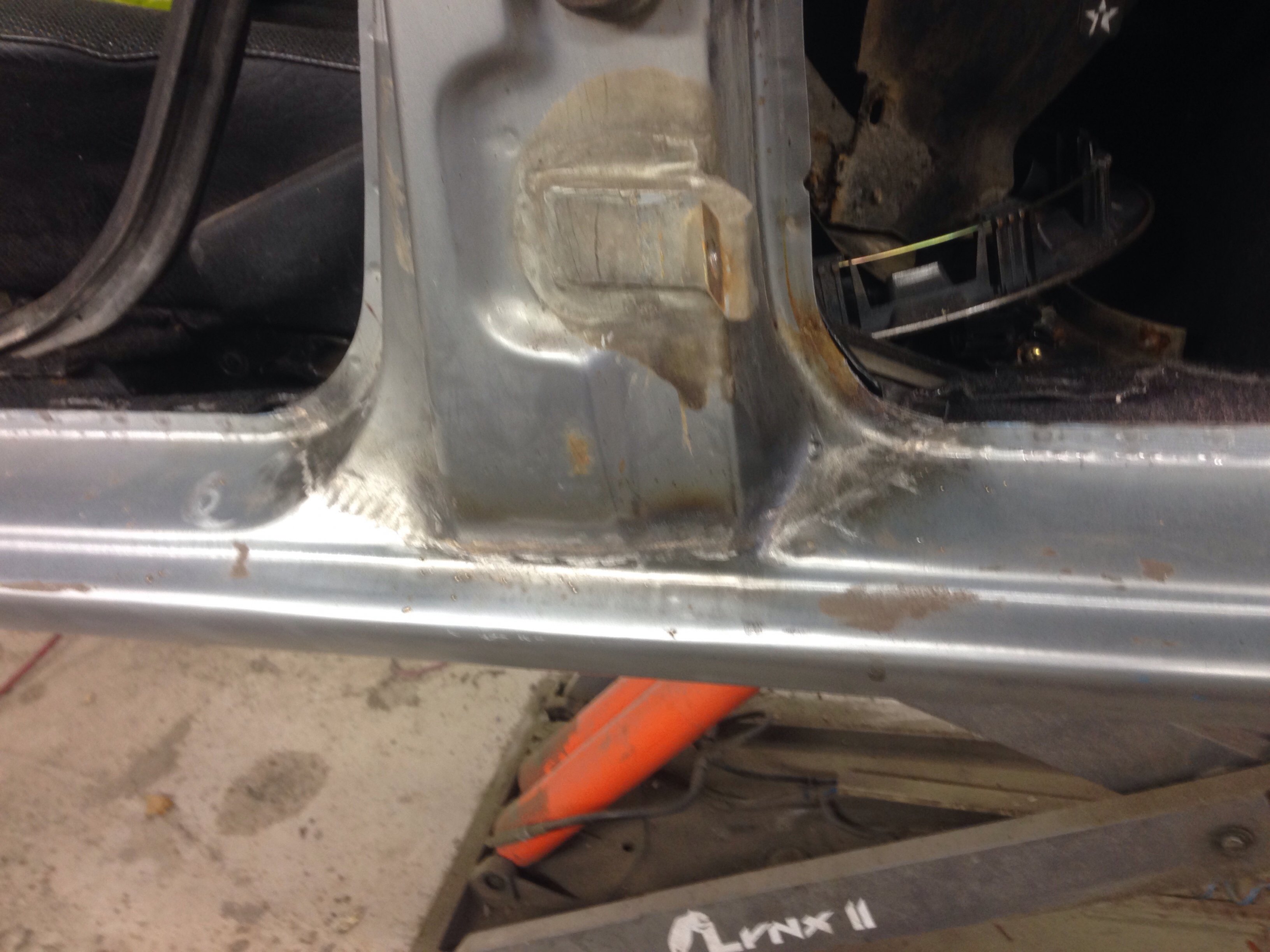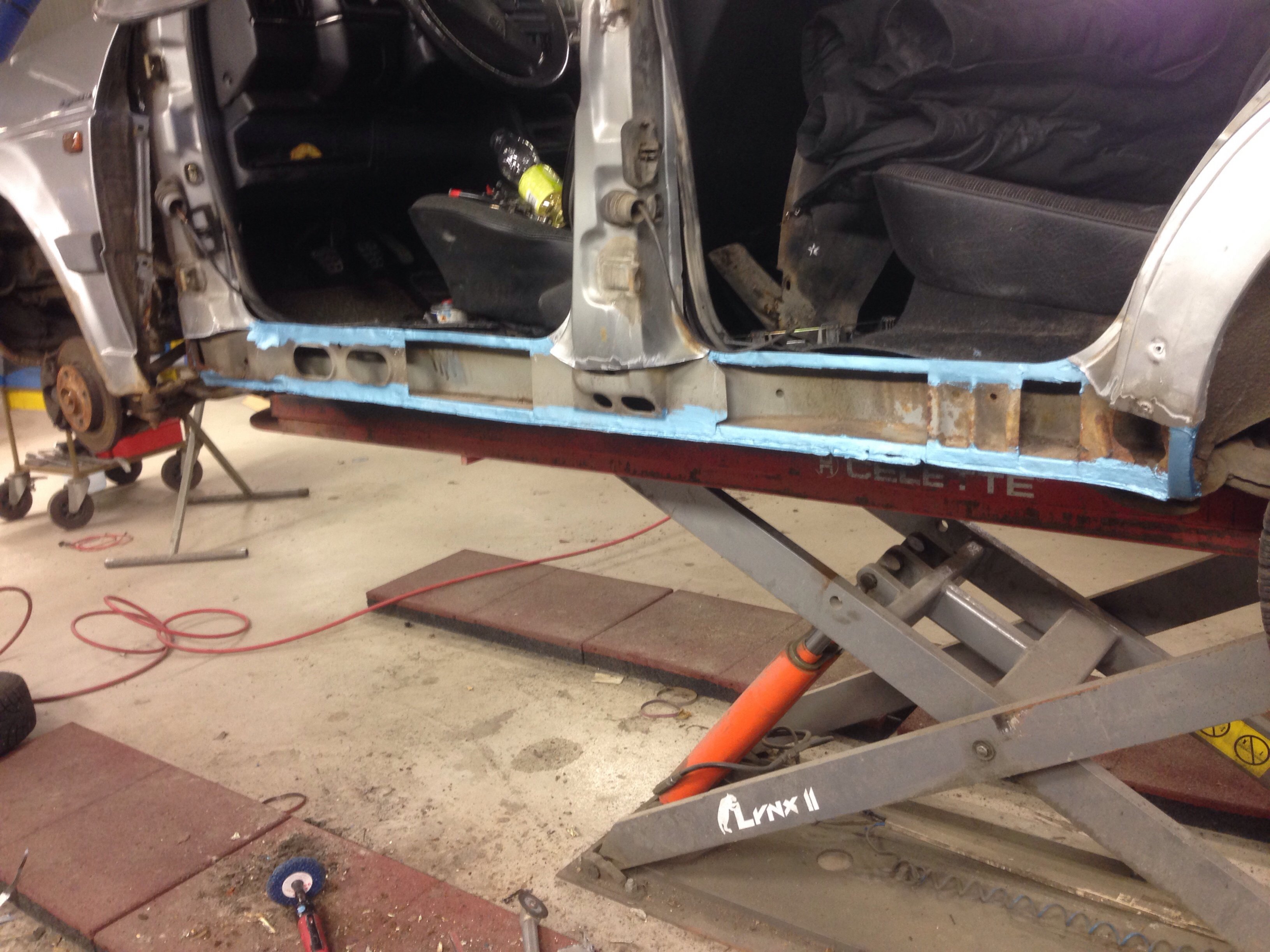 Men karossen är i mindre bra skick, nog byte på båda trösklarna, små hål i både fram & bakskärmar, lite buckor i huv & dörrar = mycket jobb...