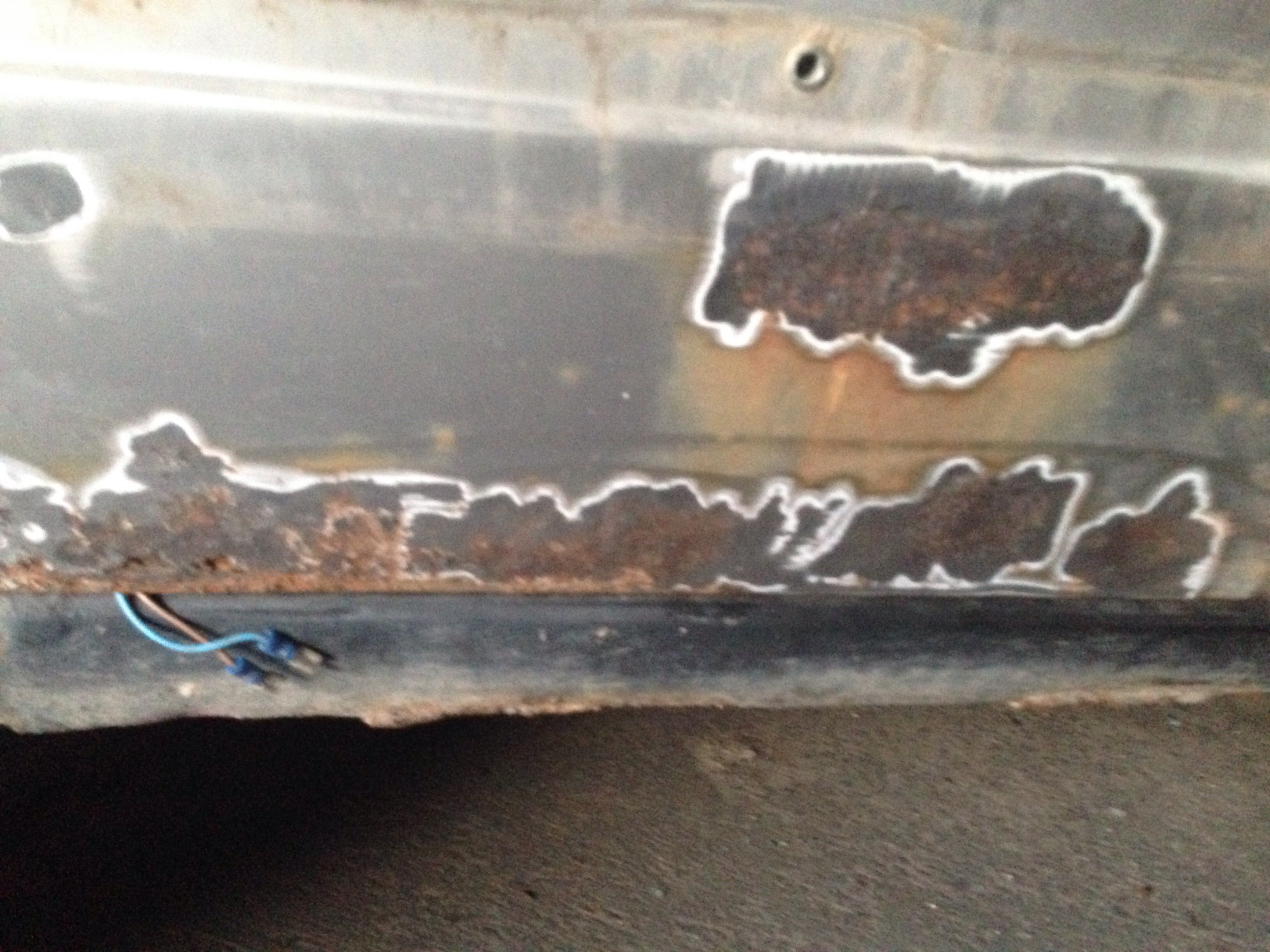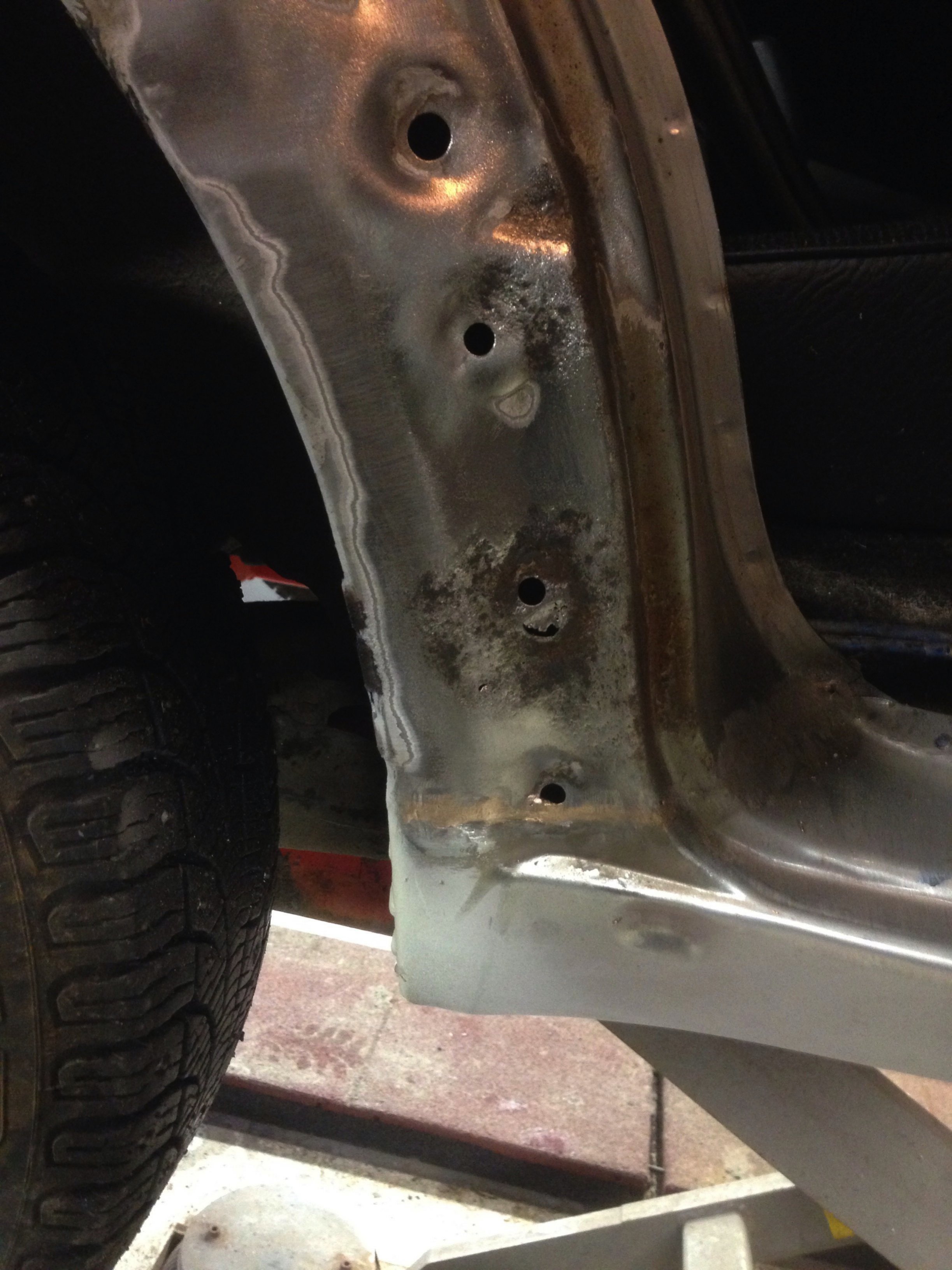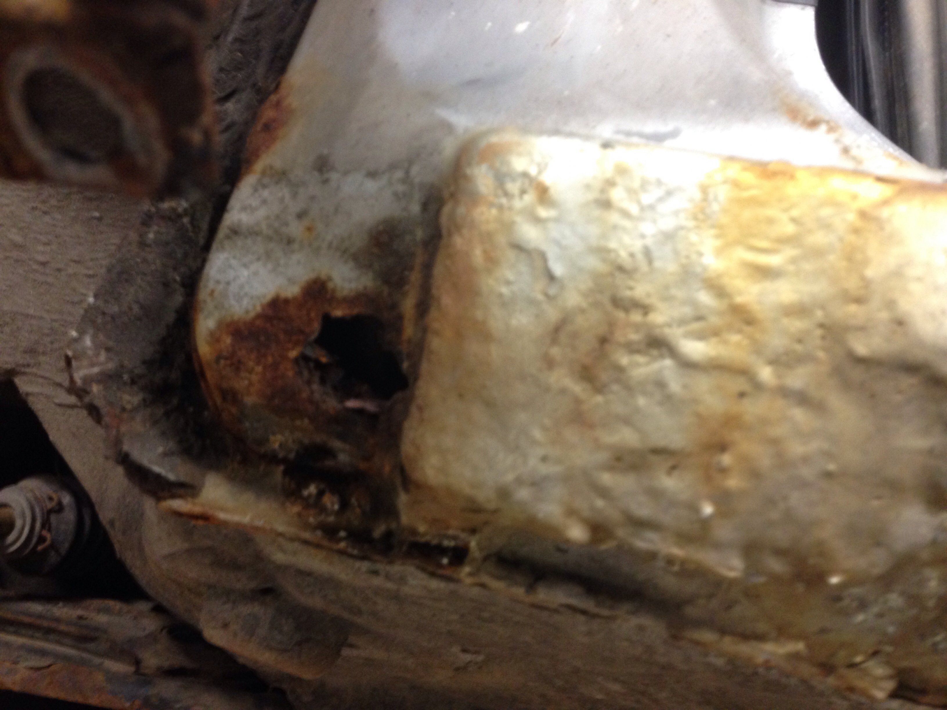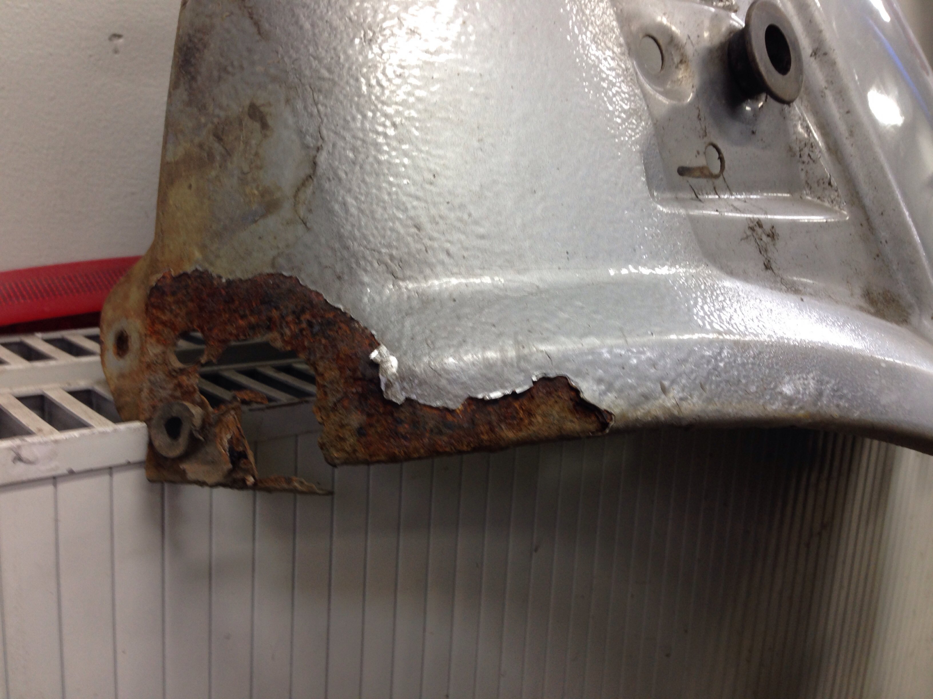 Men karossen är i mindre bra skick, nog byte på båda trösklarna, små hål i både fram & bakskärmar, lite buckor i huv & dörrar = mycket jobb...