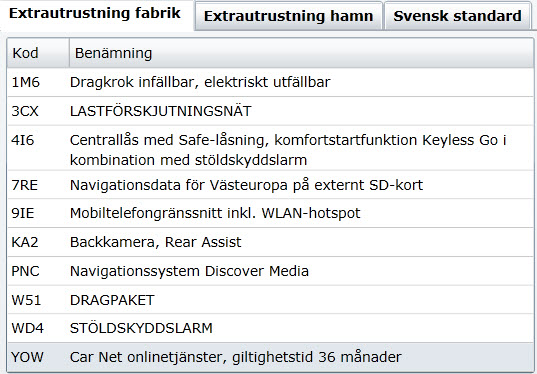 Tillvalen listas via gamla versionen av vwtillbehor.se